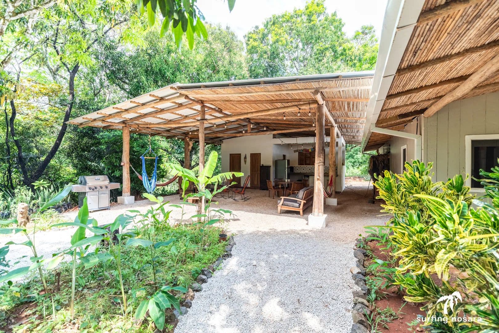 Introducing Hacienda La Tigra, an Organic Permaculture Farm, nestled in a serene and secluded corner of the Nicoya Peninsula, Pueblo Nuevo. This extraordinary property offers a unique opportunity to embrace sustainable living, immerse yourself in nature, and indulge in breathtaking ocean views. Only a short 10 minute drive to the picturesque river mouth beach of Playa Barco Quebrada and 30 minutes to the beaches of Nosara. Boasting an impressive 60 acres, this farm is a haven for those seeking a self-sustainable lifestyle. The centerpiece of the property is the meticulously designed permaculture system, which harmoniously integrates diverse crops, animals, and natural resources to create a self-sustaining ecosystem. Over 650 fruit trees are spread throughout the property and the river that flows through the farm is supported by a natural spring. Imagine waking up each day to the sights and sounds of nature, surrounded by lush gardens bursting with organic produce. The farm features a beautifully designed main rancho common area, exuding warmth and rustic Costa Rican character. The interior offers a spacious and open floor plan, with two bedrooms and two bathrooms, perfect for gatherings or a common area for retreats. A small office space and a nearby workshop area provide a perfect combination for a balanced work and play environment. Separate, but a short walking distance are the four charming teak guest cottages, providing a perfect space for retreat guests and/or rental income. Each cottage is tastefully appointed and offers a simple and casual private space for guests. Your guests have their own private terrace areas to enjoy the tranquility of the surrounding farm, river and ocean views. Convenientl located, the common shower bathroom facilities are perfectly situated to allow the guests to feel comfortable and enjoy an outdoor experience. The property is supported by a 100 meter deep permitted concession well and another artisian irrigation well. The water system includes a 30,000 liter water tank at the primary well and a 14,000 liter water tank above the retreat cabins. To support the many areas of planting, the farm utilized a water reuse treatment and drip irrigation system and a fresh water sprinkler system both extended throughout various areas of the property. Two of the main borders of the land are bound by public roads making access convenient and allowing for ease of future subdivision. New power drops and transformers have been provided from the main line to all the structures on the property via an underground electrical network. The Organic Permaculture Farm is not just a sustainable living paradise; it is also a place of natural beauty and adventure. The property is home to abundant wildlife, and hiking trails invite exploration of the surrounding hills. Located just a short drive from nearby towns and amenities, this property offers both seclusion and convenience. Whether you are seeking a self-sustaining lifestyle, an investment opportunity in eco-tourism, or a peaceful retreat, Hacienda La Tigra is a rare gem. Embrace sustainable living, connect with nature, and experience the joy of this remarkable property. For more information on this amazing opportunity please do not hesitate to contact Surfing Nosara at info@surfingnosara.com.