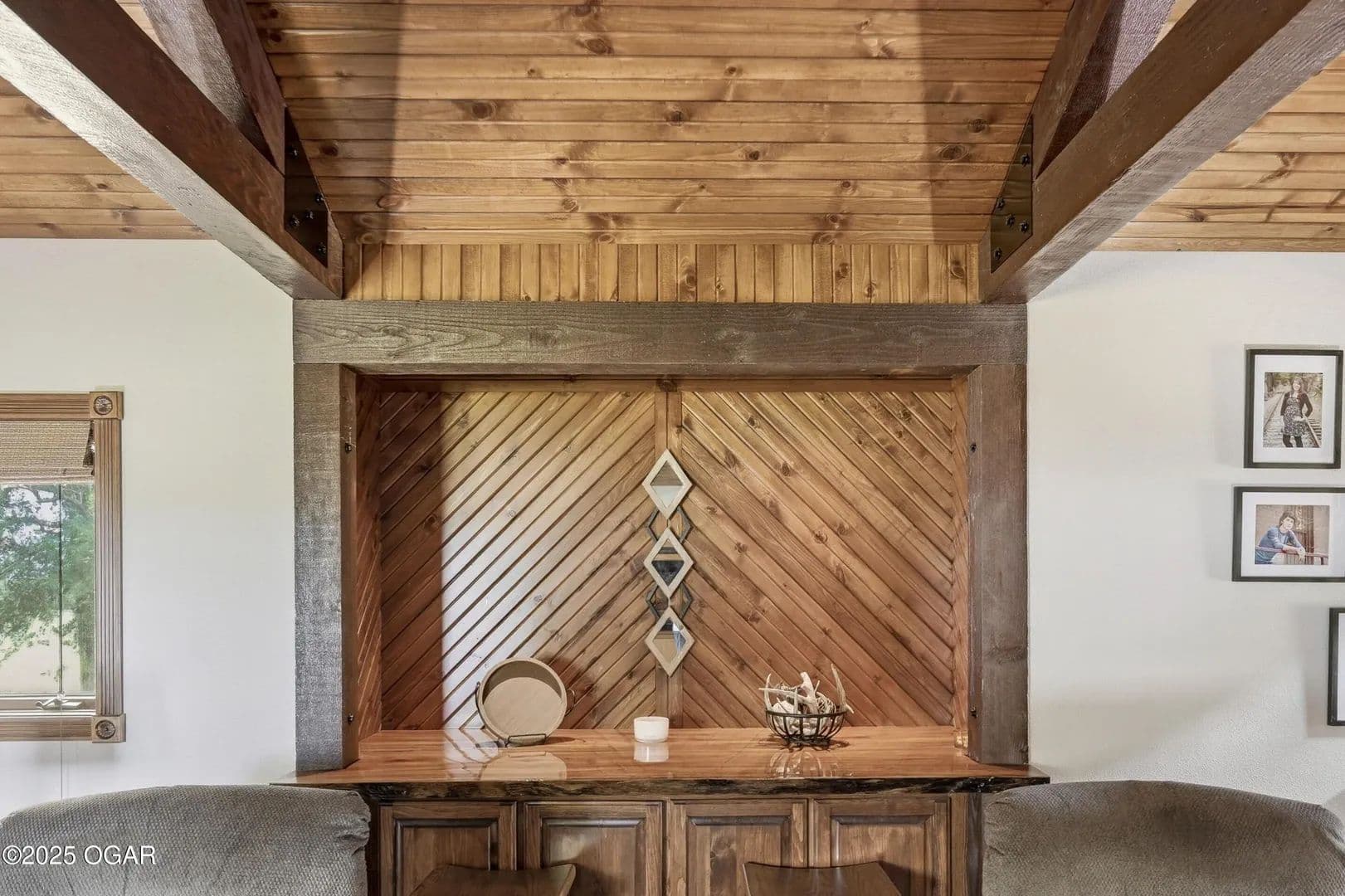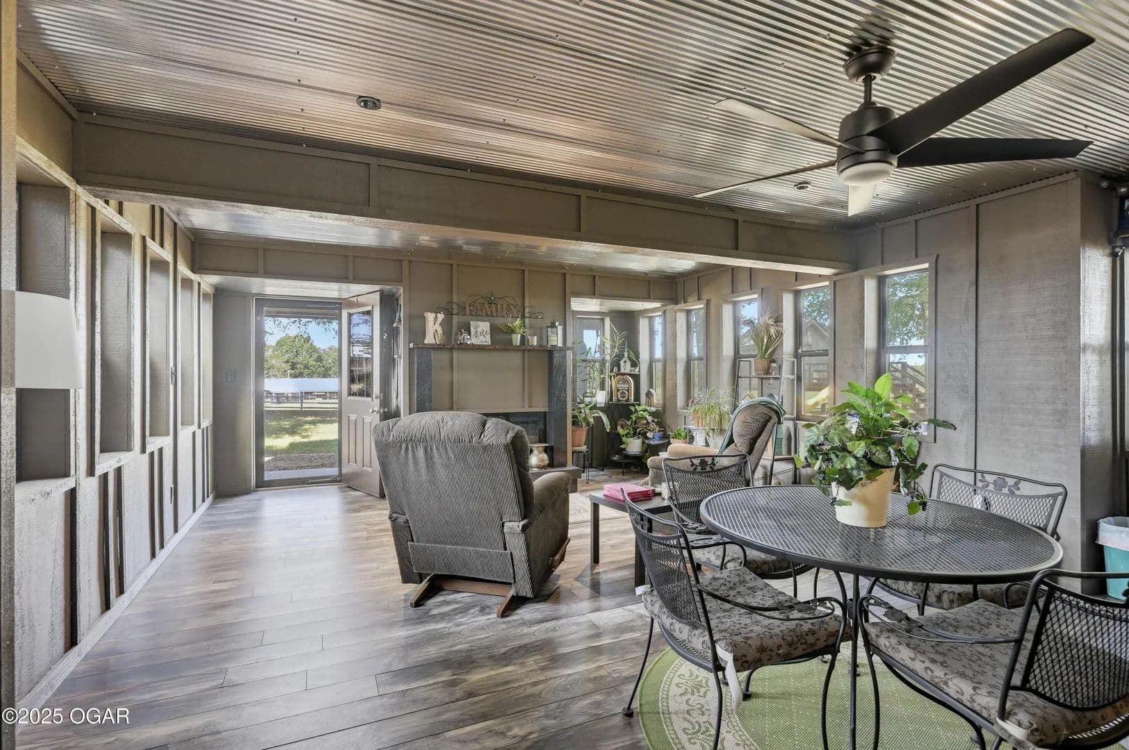 The main level offers 3 bedrooms, 2 full baths, and 2 half baths, along with an inviting living room featuring a soaring wood-burning fireplace, beamed & paneled ceilings, and a bar with storage and wood accents. The spacious kitchen includes abundant counter space, an eat-in bar, and flows seamlessly into the formal dining room and adjacent sunroom—perfect for relaxing, reading, or game night. Practical touches abound with multiple storage closets, an oversized laundry room, and a mudroom leading to the side porch.