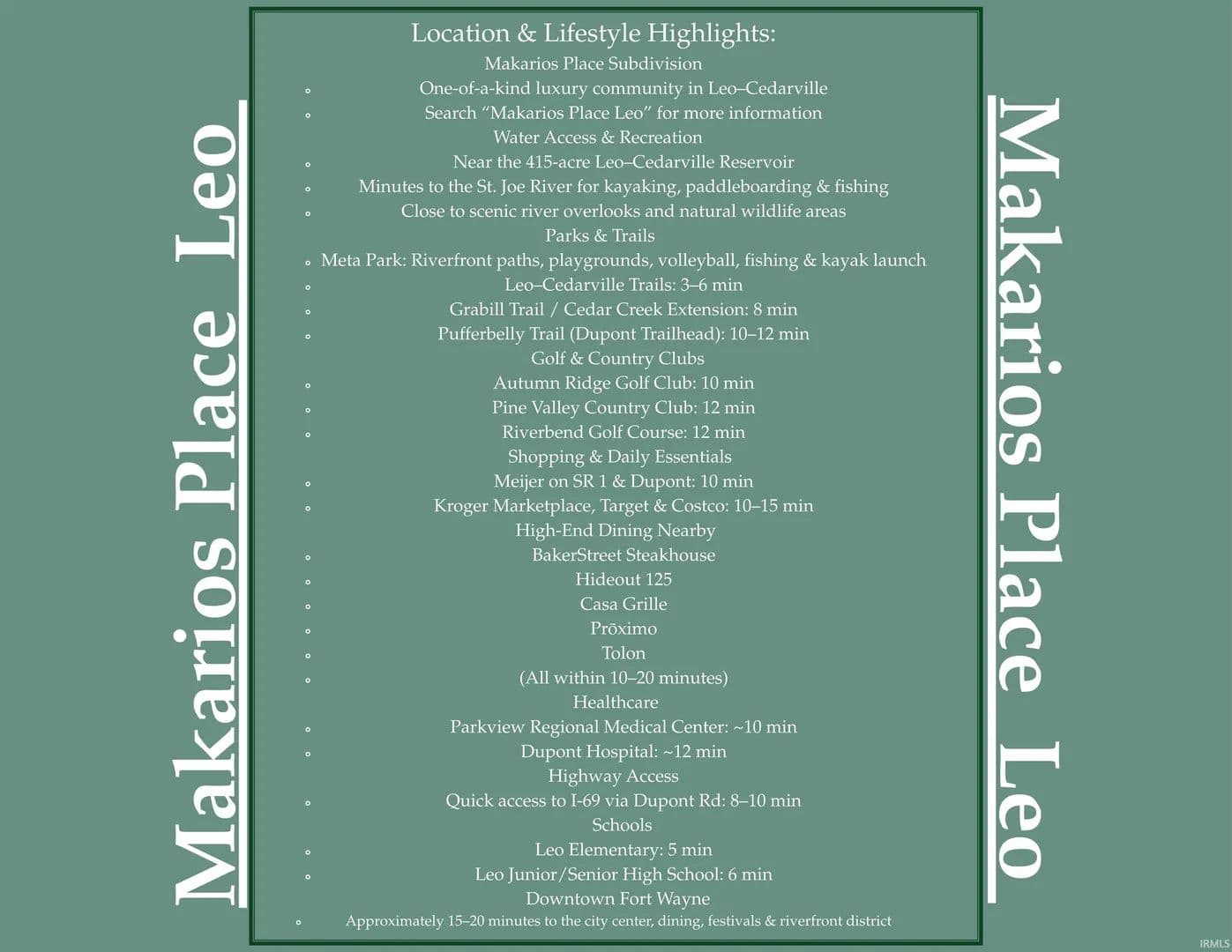 LOT #23 In Makarios Place: Build your customized, dream home with Star Homes on this builder exclusive lot. Welcome to this stunning 0.44-acre pond lot in the desirable Makarios Place subdivision. Nestled in a scenic, tree-lined setting, this property offers a blend of peaceful, woodsy living with convenient access to modern amenities within a short commute to Fort Wayne. Located near the Saint Joseph River and Riverside Garden Park in Leo. The subdivision features a pickleball court, pond views, and walking trails offering opportunities for outdoor recreation. Located in East Allen School District/Leo Schools. Makarios Place lots have city sewer, city water and electricity available. Floor Plan provided is only for inspiration only. This lot is vacant and waiting for you perfect custom home!