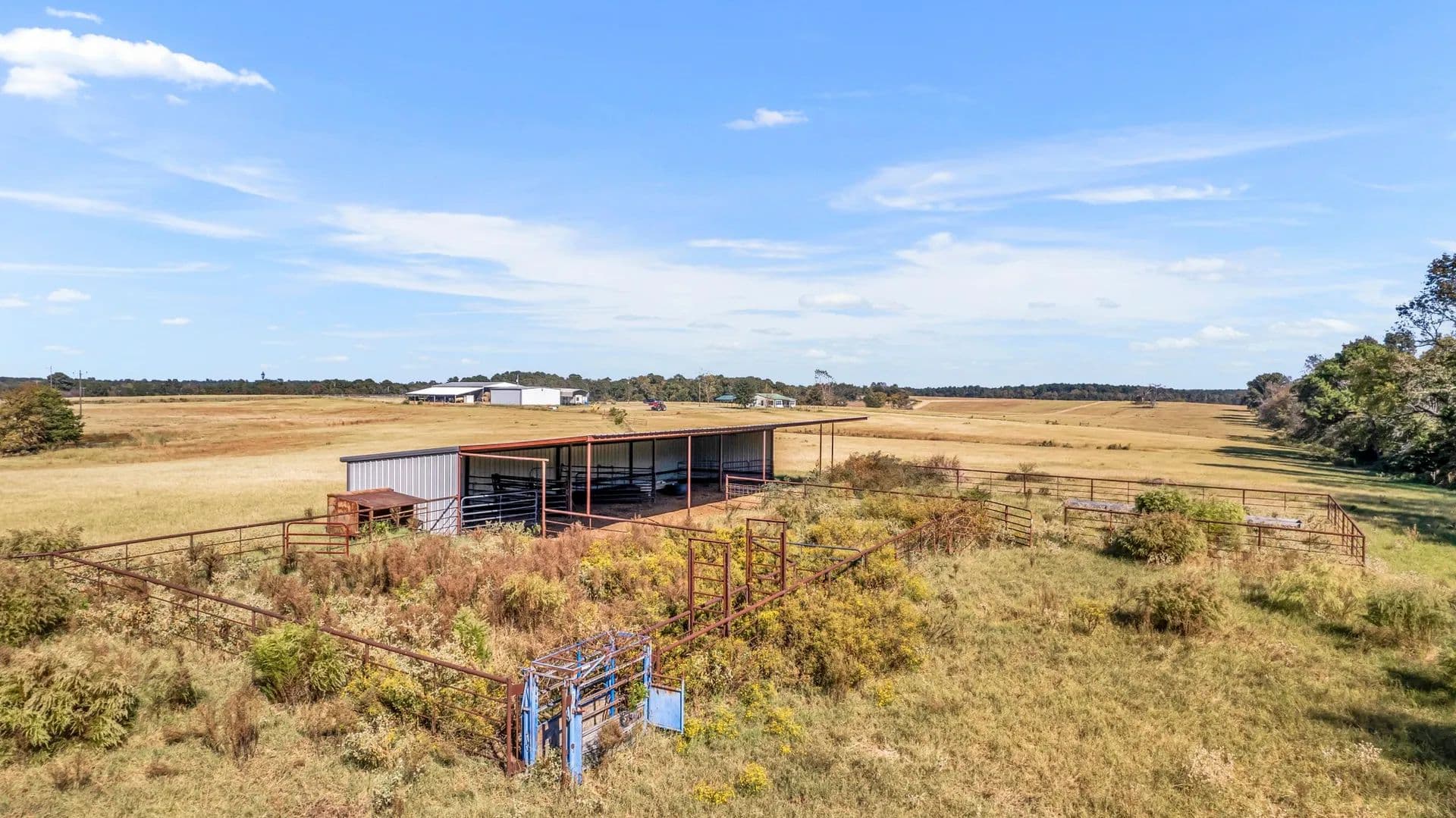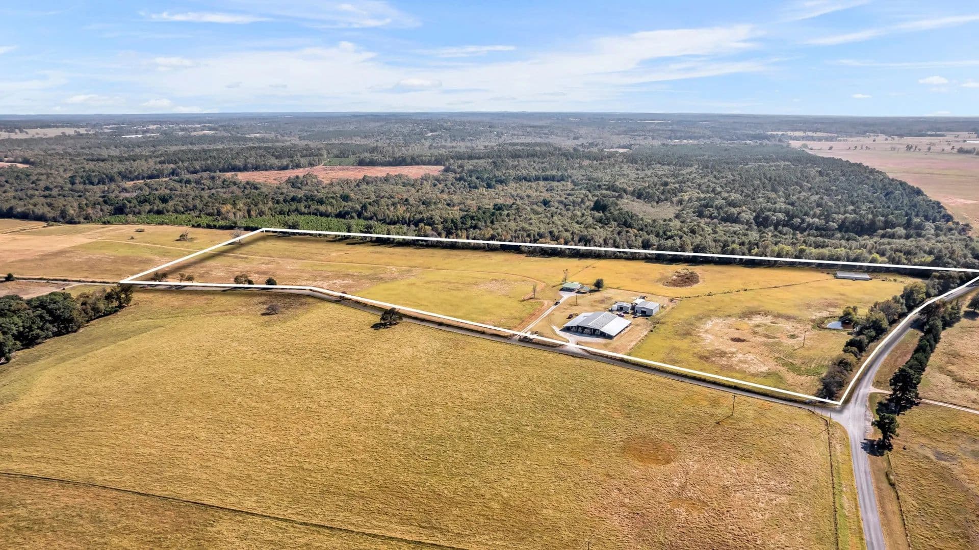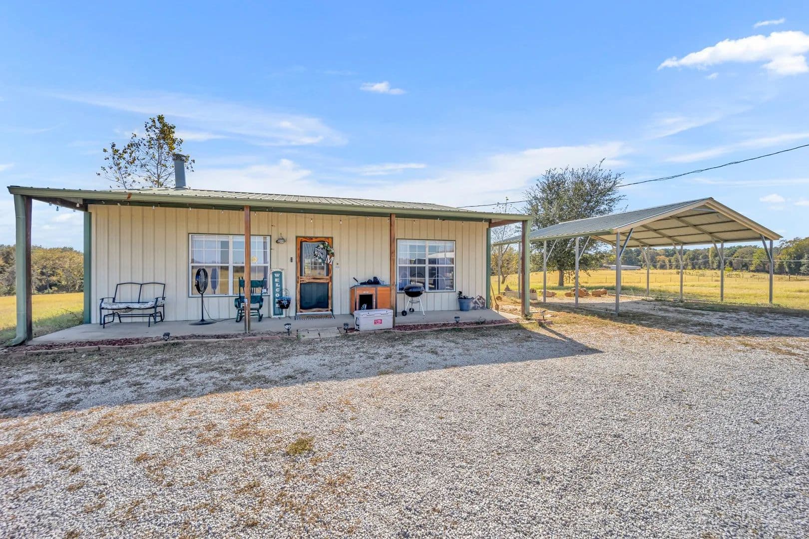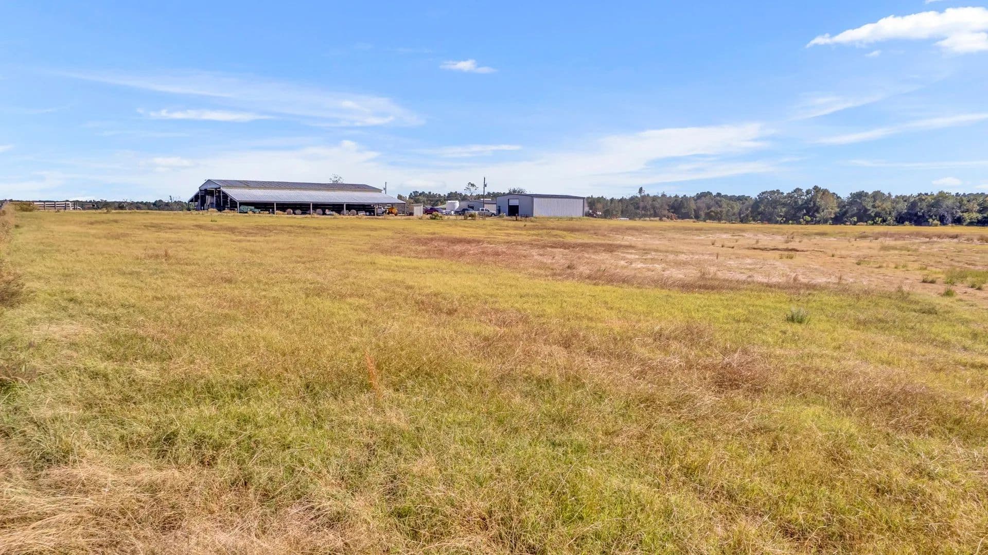 Stunning turnkey ranch on 40 acres with a 1 Bed 1 Bath modern farmhouse! Make this beautiful acreage your dream space, with plenty of room for cattle, horses, and a lush Bermuda hay business. The cozy farmhouse is a fantastic space to call home while you build a larger house, great guest quarters, or even a living space for a ranch hand! Enjoy sunrises on the wide front porch and sunset views through the bonus sunroom or off the covered back patio. You’ll love the high ceilings and open floor plan, plus a full utility and laundry room provides extra storage! Enjoy the chef’s kitchen with large island, stainless cabinets, farmhouse sink, and plentiful cabinets. A bonus nook in the bedroom with gorgeous light is a great office or seating area with a big walk-in closet. Start your ranch right away with the 50’ x 40’ insulated workshop with electric, a 20’ x 40’ storage building, a spacious loafing shed with pens, and a 10,000 sq ft hay barn. With great road access and frontage, travel with equipment to and from the pastures will be easy. Other tracts east on Spillway Rd are also available for expansion! This tranquil retreat and working ranch has incredible possibilities and will be your peaceful rural haven. Call today for more information!