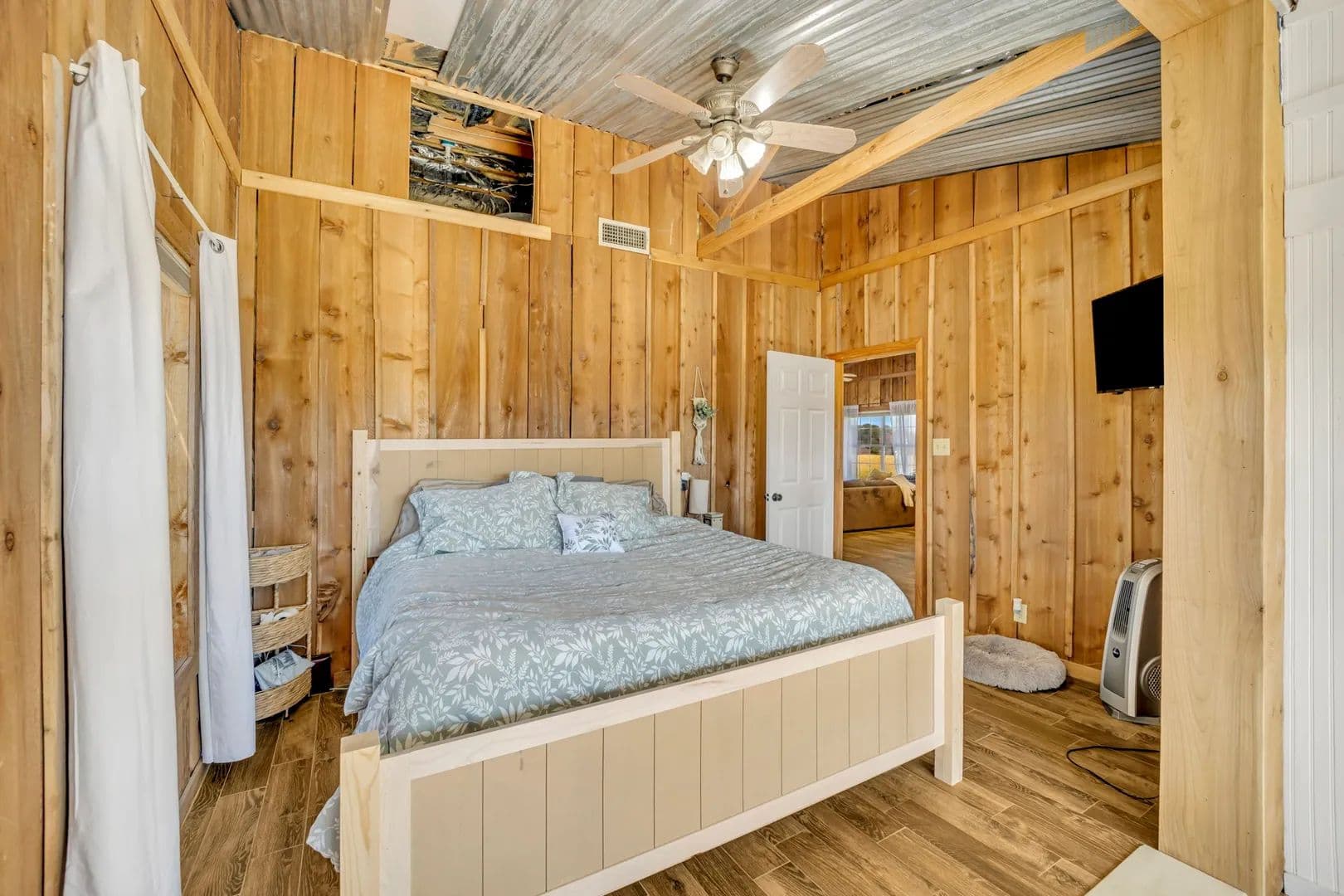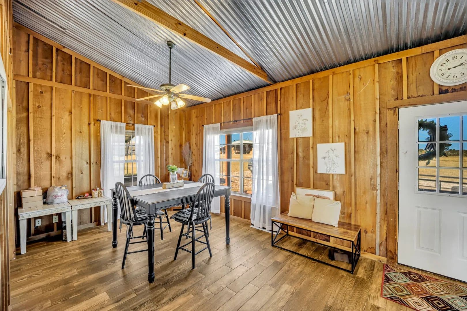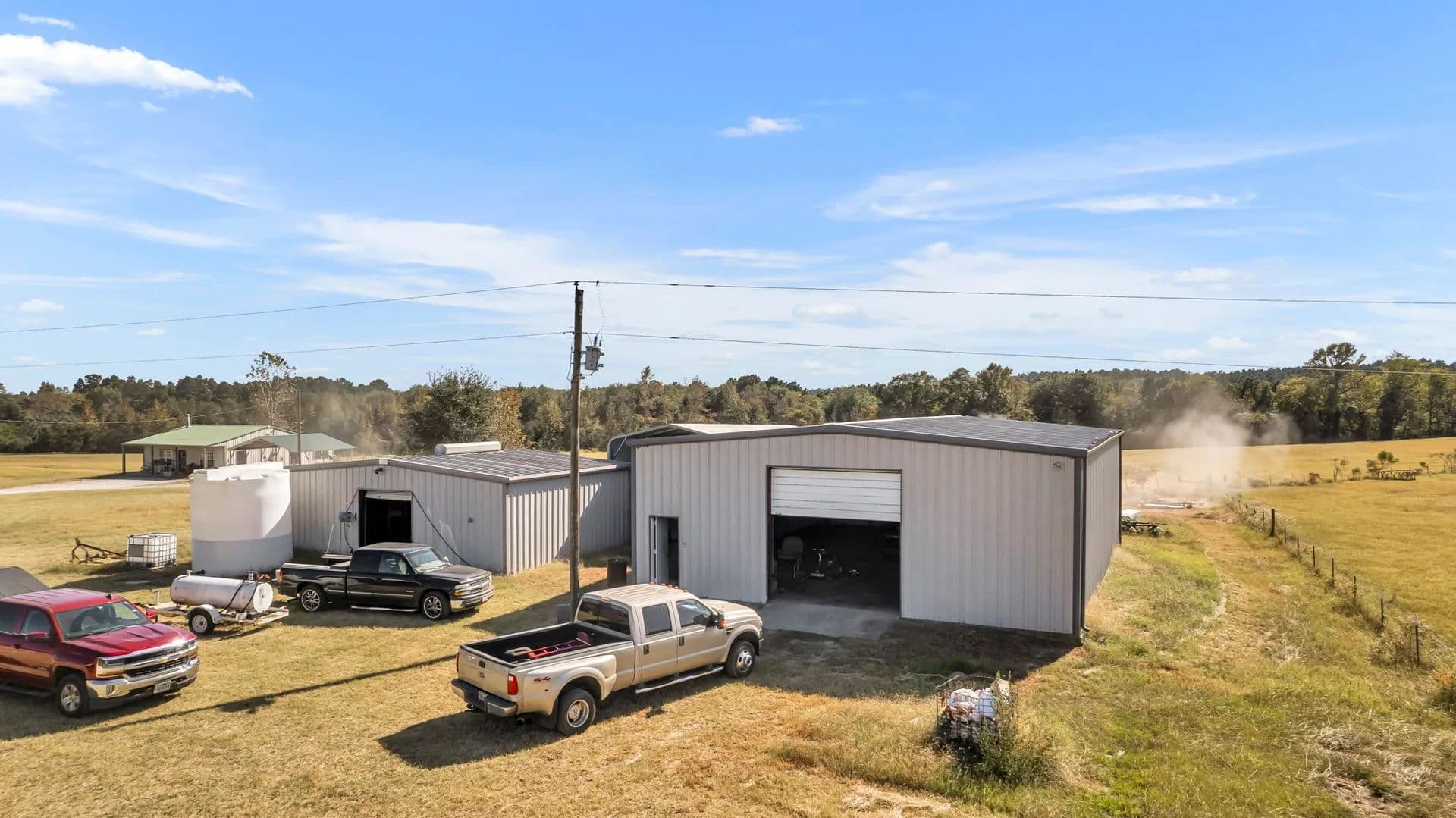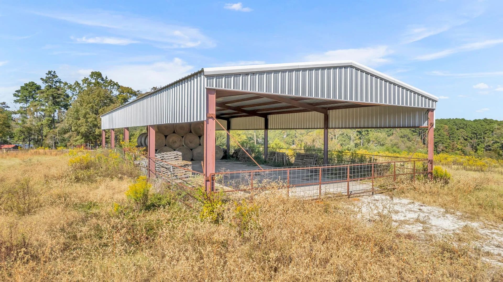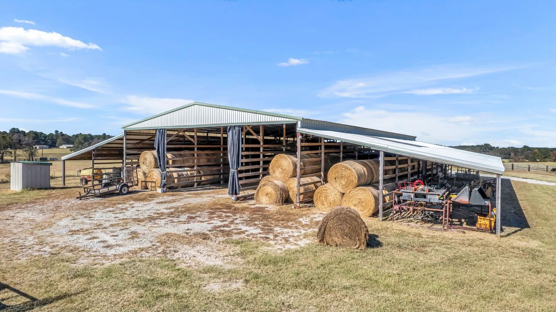 Stunning turnkey ranch on 40 acres with a 1 Bed 1 Bath modern farmhouse! Make this beautiful acreage your dream space, with plenty of room for cattle, horses, and a lush Bermuda hay business. The cozy farmhouse is a fantastic space to call home while you build a larger house, great guest quarters, or even a living space for a ranch hand! Enjoy sunrises on the wide front porch and sunset views through the bonus sunroom or off the covered back patio. You’ll love the high ceilings and open floor plan, plus a full utility and laundry room provides extra storage! Enjoy the chef’s kitchen with large island, stainless cabinets, farmhouse sink, and plentiful cabinets. A bonus nook in the bedroom with gorgeous light is a great office or seating area with a big walk-in closet. Start your ranch right away with the 50’ x 40’ insulated workshop with electric, a 20’ x 40’ storage building, a spacious loafing shed with pens, and a 10,000 sq ft hay barn. With great road access and frontage, travel with equipment to and from the pastures will be easy. Other tracts east on Spillway Rd are also available for expansion! This tranquil retreat and working ranch has incredible possibilities and will be your peaceful rural haven. Call today for more information!