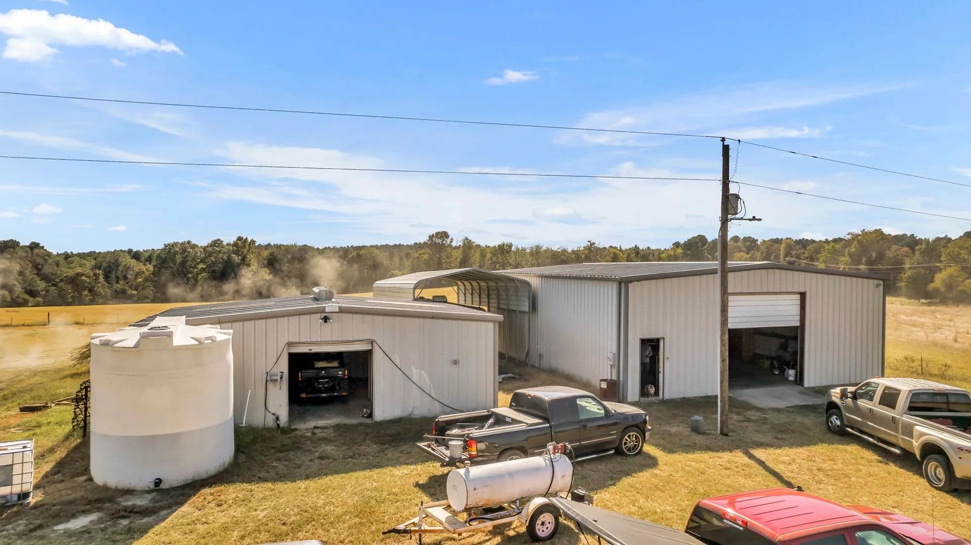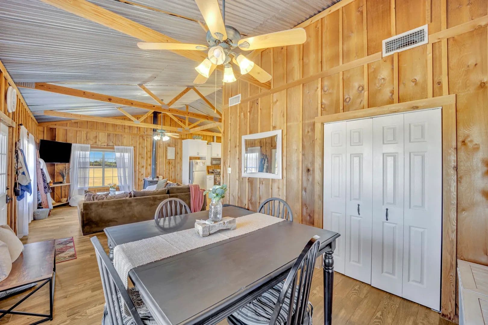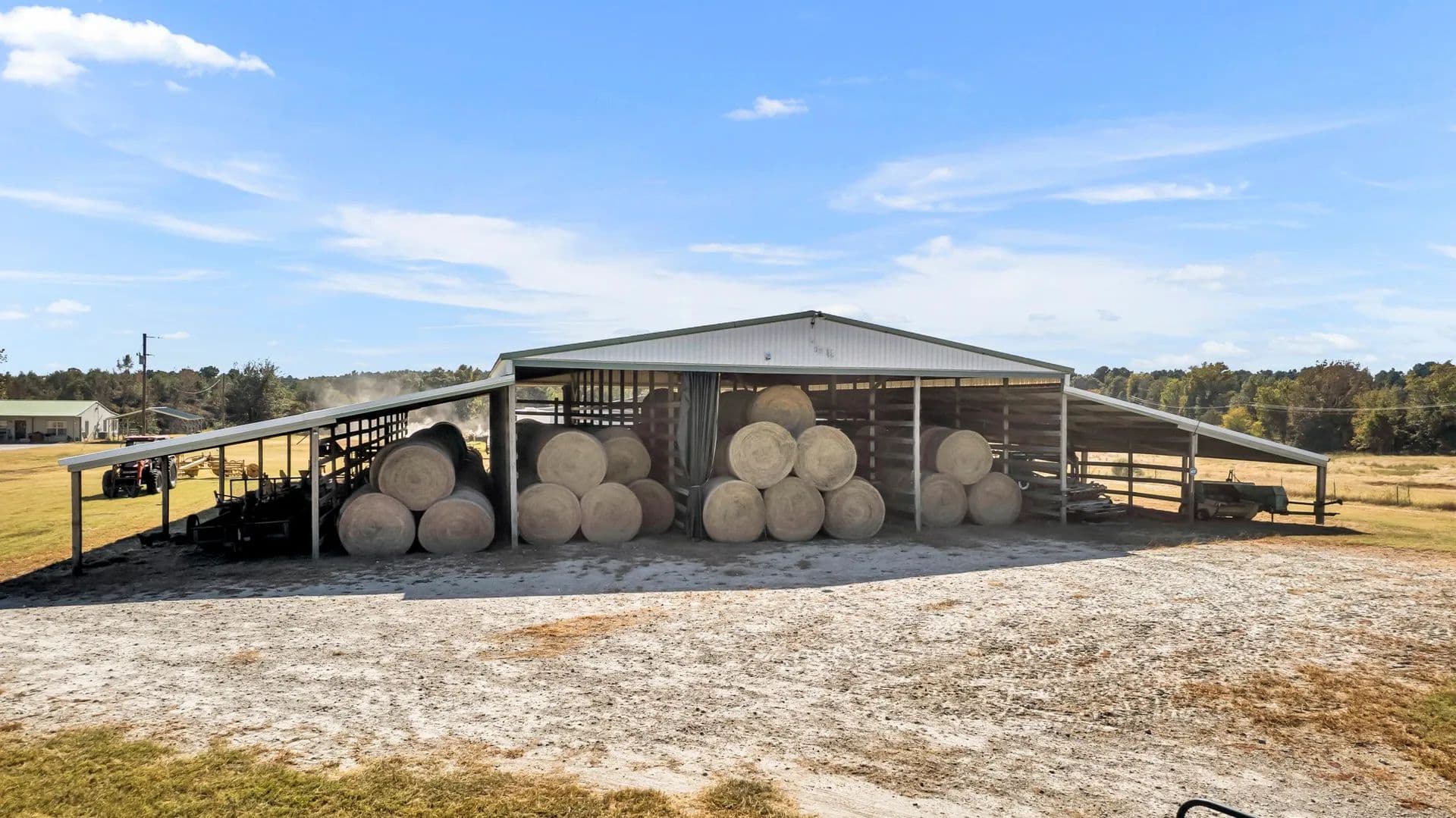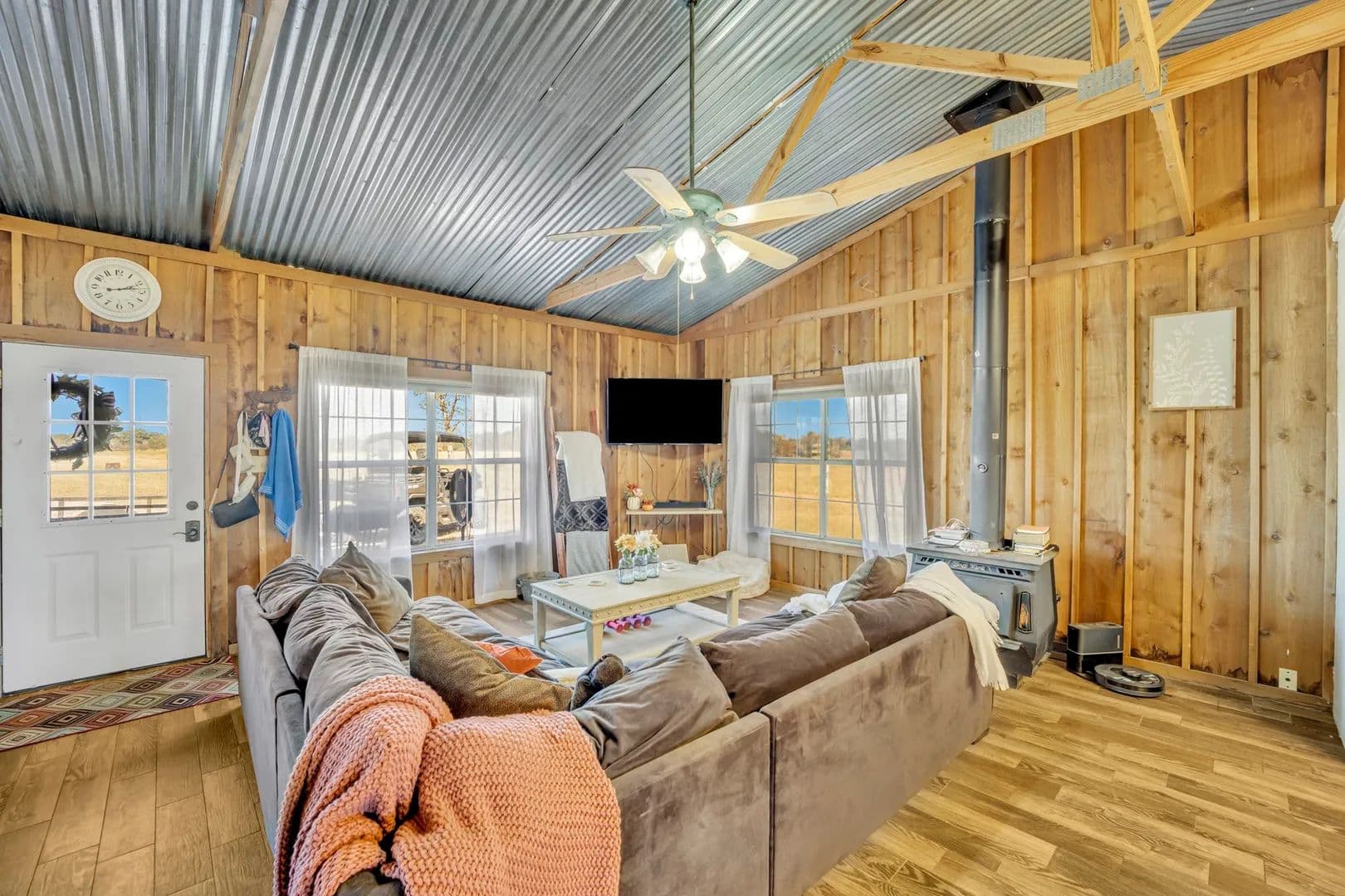 Stunning turnkey ranch on 40 acres with a 1 Bed 1 Bath modern farmhouse! Make this beautiful acreage your dream space, with plenty of room for cattle, horses, and a lush Bermuda hay business. The cozy farmhouse is a fantastic space to call home while you build a larger house, great guest quarters, or even a living space for a ranch hand! Enjoy sunrises on the wide front porch and sunset views through the bonus sunroom or off the covered back patio. You’ll love the high ceilings and open floor plan, plus a full utility and laundry room provides extra storage! Enjoy the chef’s kitchen with large island, stainless cabinets, farmhouse sink, and plentiful cabinets. A bonus nook in the bedroom with gorgeous light is a great office or seating area with a big walk-in closet. Start your ranch right away with the 50’ x 40’ insulated workshop with electric, a 20’ x 40’ storage building, a spacious loafing shed with pens, and a 10,000 sq ft hay barn. With great road access and frontage, travel with equipment to and from the pastures will be easy. Other tracts east on Spillway Rd are also available for expansion! This tranquil retreat and working ranch has incredible possibilities and will be your peaceful rural haven. Call today for more information!