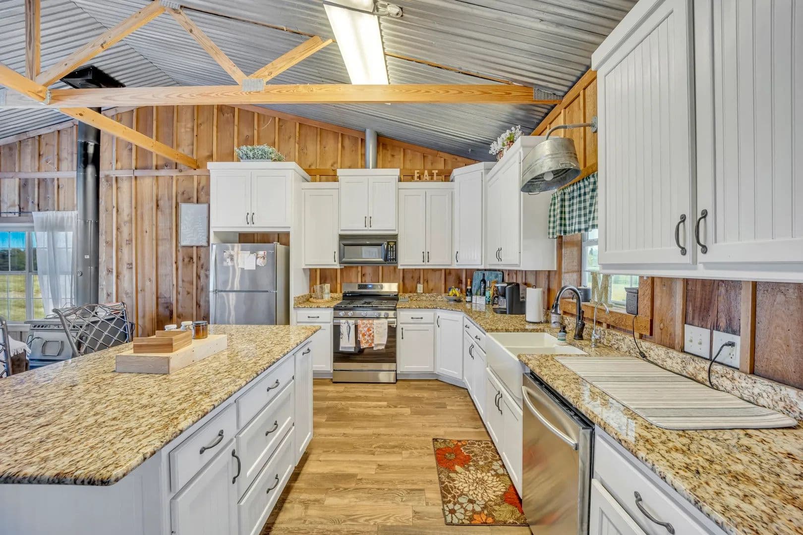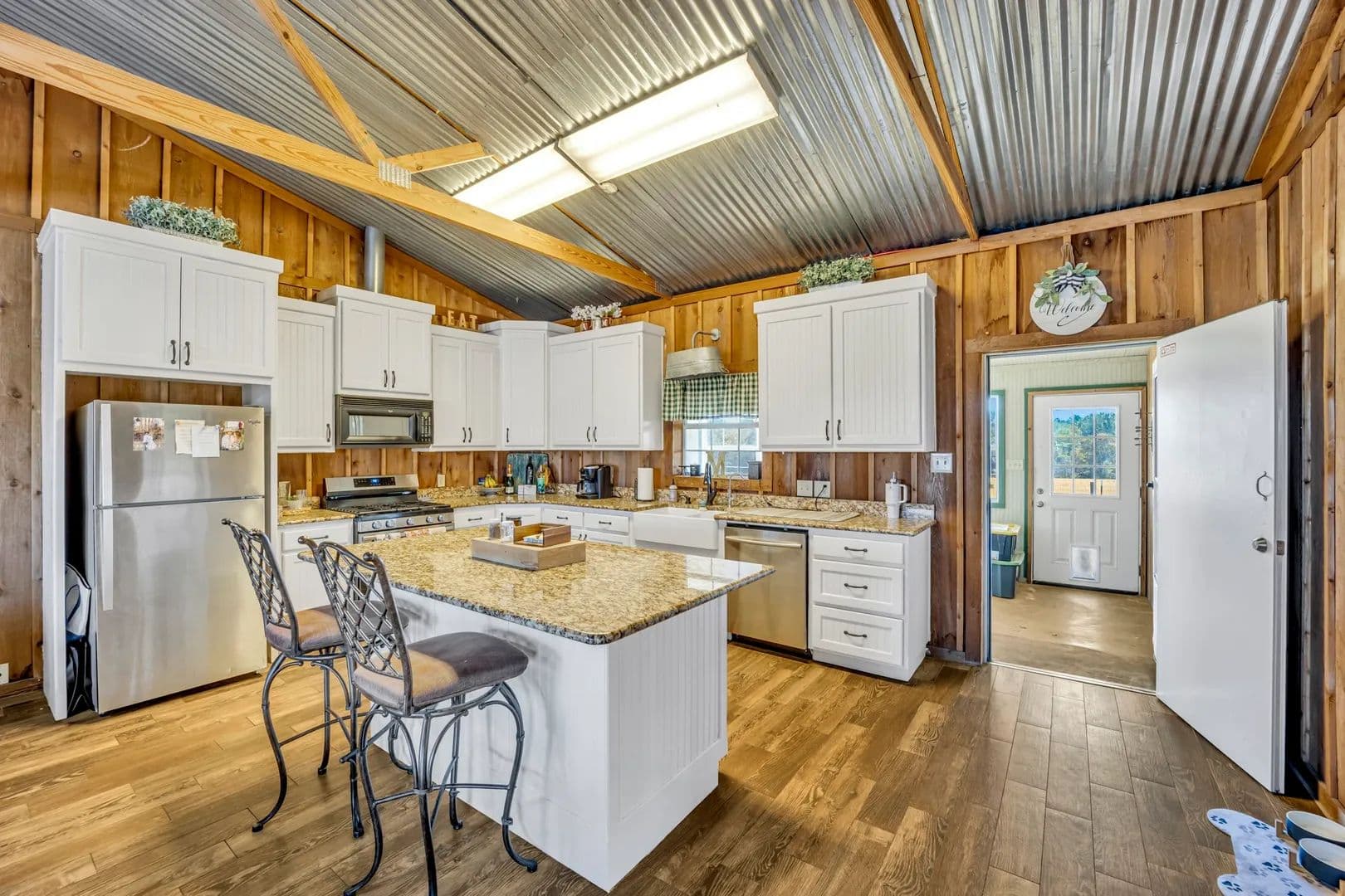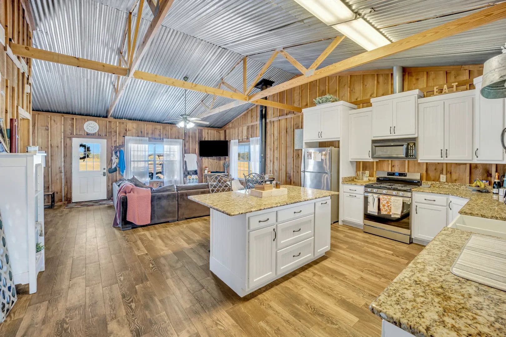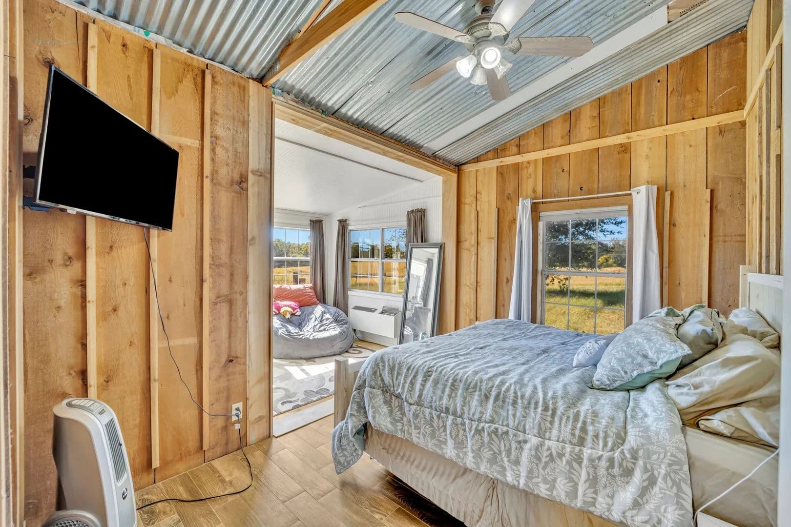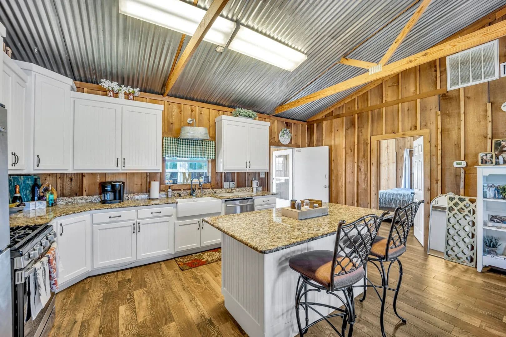 Stunning turnkey ranch on 40 acres with a 1 Bed 1 Bath modern farmhouse! Make this beautiful acreage your dream space, with plenty of room for cattle, horses, and a lush Bermuda hay business. The cozy farmhouse is a fantastic space to call home while you build a larger house, great guest quarters, or even a living space for a ranch hand! Enjoy sunrises on the wide front porch and sunset views through the bonus sunroom or off the covered back patio. You’ll love the high ceilings and open floor plan, plus a full utility and laundry room provides extra storage! Enjoy the chef’s kitchen with large island, stainless cabinets, farmhouse sink, and plentiful cabinets. A bonus nook in the bedroom with gorgeous light is a great office or seating area with a big walk-in closet. Start your ranch right away with the 50’ x 40’ insulated workshop with electric, a 20’ x 40’ storage building, a spacious loafing shed with pens, and a 10,000 sq ft hay barn. With great road access and frontage, travel with equipment to and from the pastures will be easy. Other tracts east on Spillway Rd are also available for expansion! This tranquil retreat and working ranch has incredible possibilities and will be your peaceful rural haven. Call today for more information!