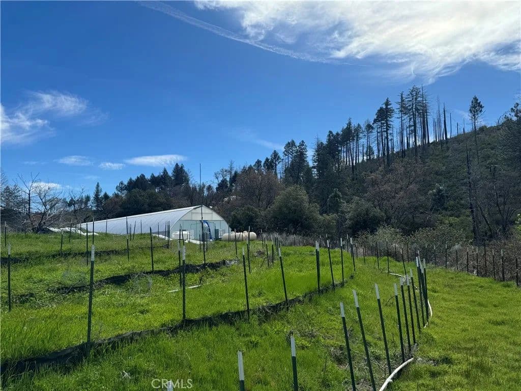 Welcome to a rare 25-acre off-grid property spanning two connecting parcels, offering privacy, sustainability, and convenience just minutes from Yankee Hill Hardware, the Rock House restaurant, and Canyon Lakes General Store with gas station. The centerpiece is a 30’ x 108’ Forever Flowering greenhouse valued at over $150,000, fully automated with propane heat, dual propane tanks, high-powered fans, irrigation, and custom storage. A solar-powered bathhouse, built after the Camp Fire, includes a shower, tub, toilet, vanity, hot water, and is connected to a county-approved septic system. Water is abundant with a dual-action well pump producing 28 gallons per minute (buyer to verify), supported by 9,000 gallons of holding tanks and a 750-gallon food tank, plus a secondary meadow well. Additional improvements include a 20’ x 24’ shop with AC, an 18’ x 40’ steel RV carport with 50-amp service, and multiple cargo containers for storage, some insulated with AC. Also includes over 2k worth of electrical supplies. The property also features a stone patio, automated gated entry, and multiple driveway access points. For gardening, there are terraced organic beds, two irrigated smart pot gardens with nearly 900 pots, and established fruit trees including cherries, apples, pears, plums, pomegranate, walnuts, and blackberries. Designed for self-sufficient living, all gardens and greenhouse systems are plumbed for easy irrigation at the turn of a valve. With septic, propane, power, and water infrastructure already in place, it’s ready for a modular home, farming, or sustainable retreat. This is a one-of-a-kind property with unmatched potential—schedule your showing today.