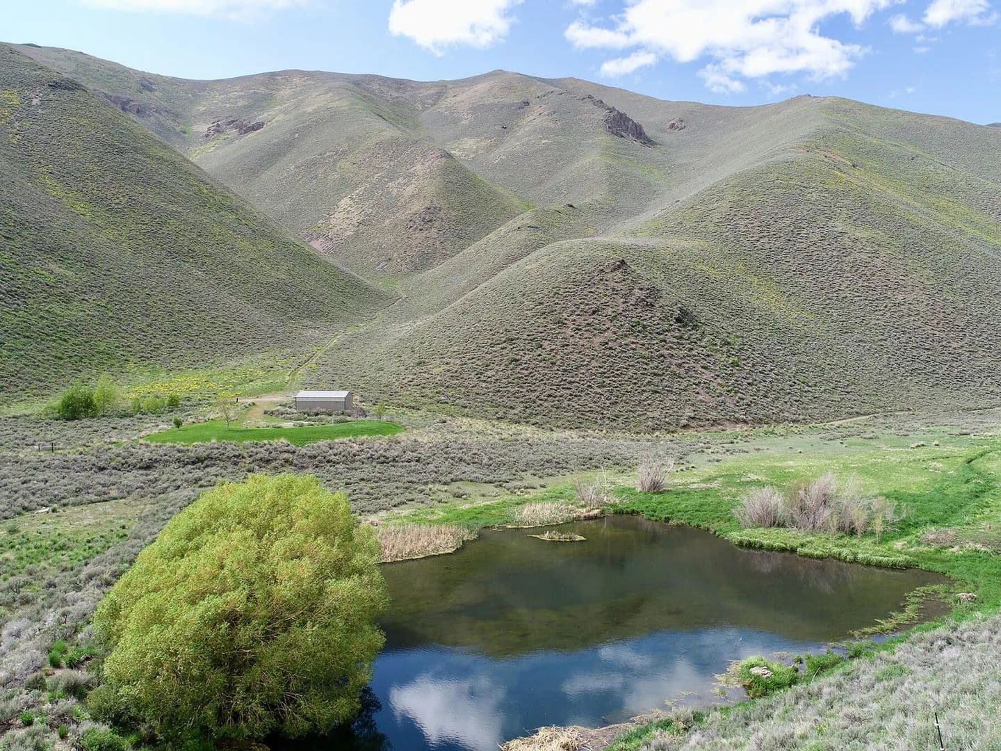 Spirit Woman Ranch is an 80-acre property located 3 miles NE from Bellevue and 20 miles from Sun Valley Resort, it sits in a secluded canyon surrounded by federal lands. A spring-fed creek flows through the ranch, with a pond and water rights. The land includes a 1,080 sq. ft. garage, a homesite, and a septic system. It offers off-grid potential, access via a seasonal road.