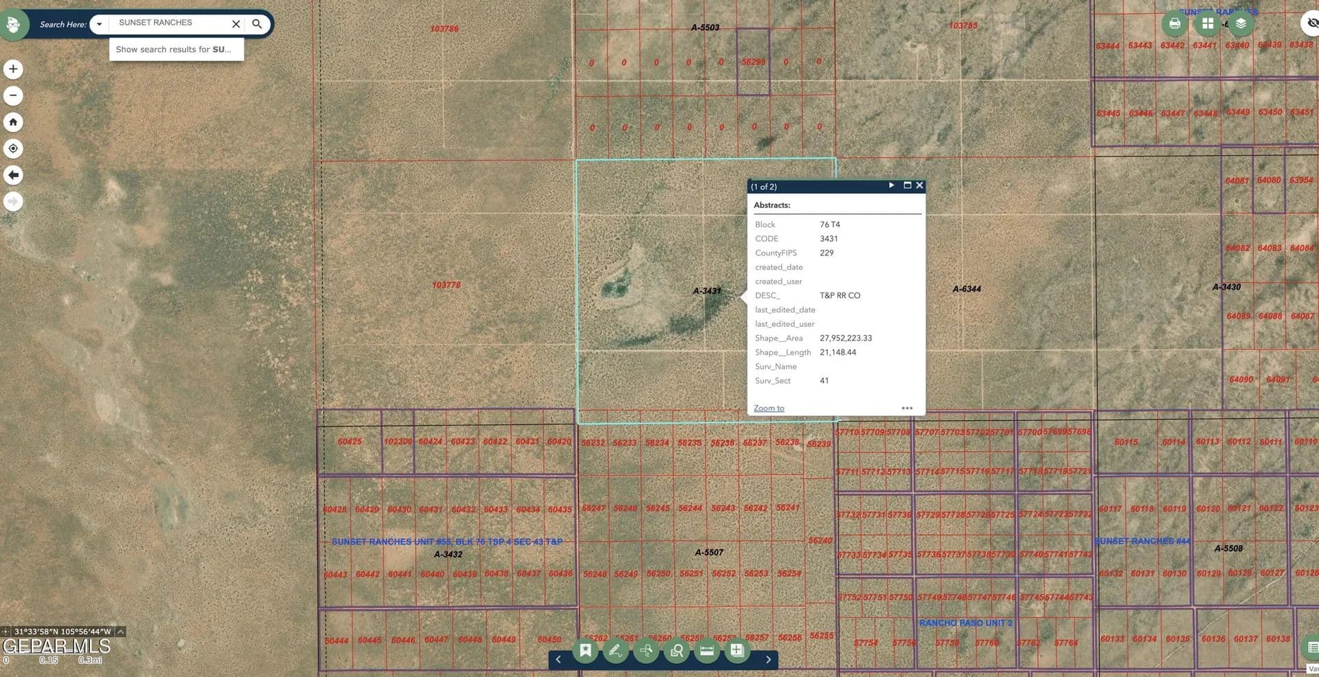 The land identified as 76 TSP Sec 41 T&P Sunset Ranch, located in Fabens, TX 79838, is an approximately 36-acre parcel within the Sunset Ranches subdivision. The property features dirt road frontage with access via Sandy Rd and Sombra Verde Ave and currently has no utilities in place. It is commonly described as undeveloped scrub land and offers a natural, rural setting.