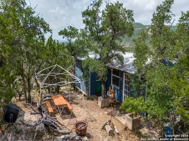 Seeking privacy? Discover over 9 acres of beautiful Texas Hill Country with breathtaking views, open spaces, and a variety of native trees including American Smoke, Madrone, and Oak. Perfect for hunters and nature lovers-wildlife and deer feeders already on-site! This 9.37-acre property is fully fenced on all 4 sides and features a gated driveway entrance, plus an unfinished 392 sq ft cabin equipped with solar-powered lighting and a composting toilet. Peaceful and serene with endless potential-bring your builder and create your dream home in this quiet country subdivision. Conveniently located near Medina Lake and Bandera shopping.