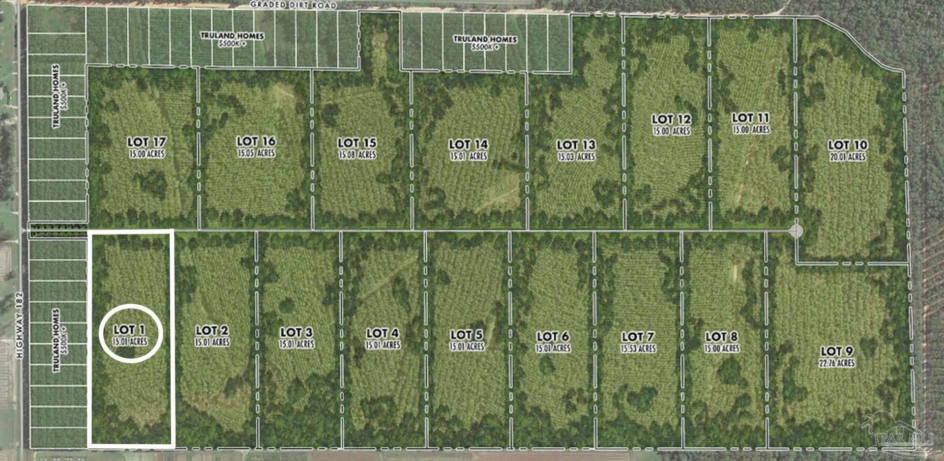 This beautiful and flat parcel has 300 ft long cleared driveway leading to 1.5 acre mulched area ready for the future home and additional outbuilding. Bring your builder or choose one of ours! Lot 1 is situated just off of Hwy 182. It is mostly level, heavily wooded with a small wet weather pond, located to the rear of the lot to create a natural private buffer! DENALI ESTATES WAS JUST PAVED (NOVEMBER 2024). ONE OF THE MOST PRIVATE LAND COMMUNITIES IN SANTA ROSA COUNTY. 15 & 20+ ACRE LOTS. 17 PARCELS ONLY. HIGH SPEED INTERNET AVAILABLE. Welcome to Denali Estates, a secluded large lot community situated just North of Pace, Florida in the beautiful Santa Rosa County Countryside. This 270 acre community offers you the upmost in privacy, tranquility, and spaciousness. Our 15 to 20+ acre lots are heavily wooded with mature pines, scattered oaks, and features road front widths of over 500’. These generous sized lots will allow for estate sized homes, outbuildings, pools, tennis courts, basketball courts, RV parking, and additional recreational vices. Denali Estates is close to many activities for the outdoor enthusiast. Santa Rosa County boast many opportunities to get outside and enjoy the best that nature has to offer. Our Gulf Coast welcomes you with the emerald blue waters of the Gulf of Mexico, some of the most beautiful sandy white beaches you’ve ever seen, and fun filled family water activities. If you prefer fresh water, Blackwater River offers freshwater fishing, kayaking and tubing. Blackwater State Forest has many small creeks, horseback riding, nature trails, zip lining, canoeing and tubing. While Denali Estates is located “off the beaten path” you will find the short drive to shopping (new Publix!), restaurants, and Big Box stores relaxing and enjoyable!
