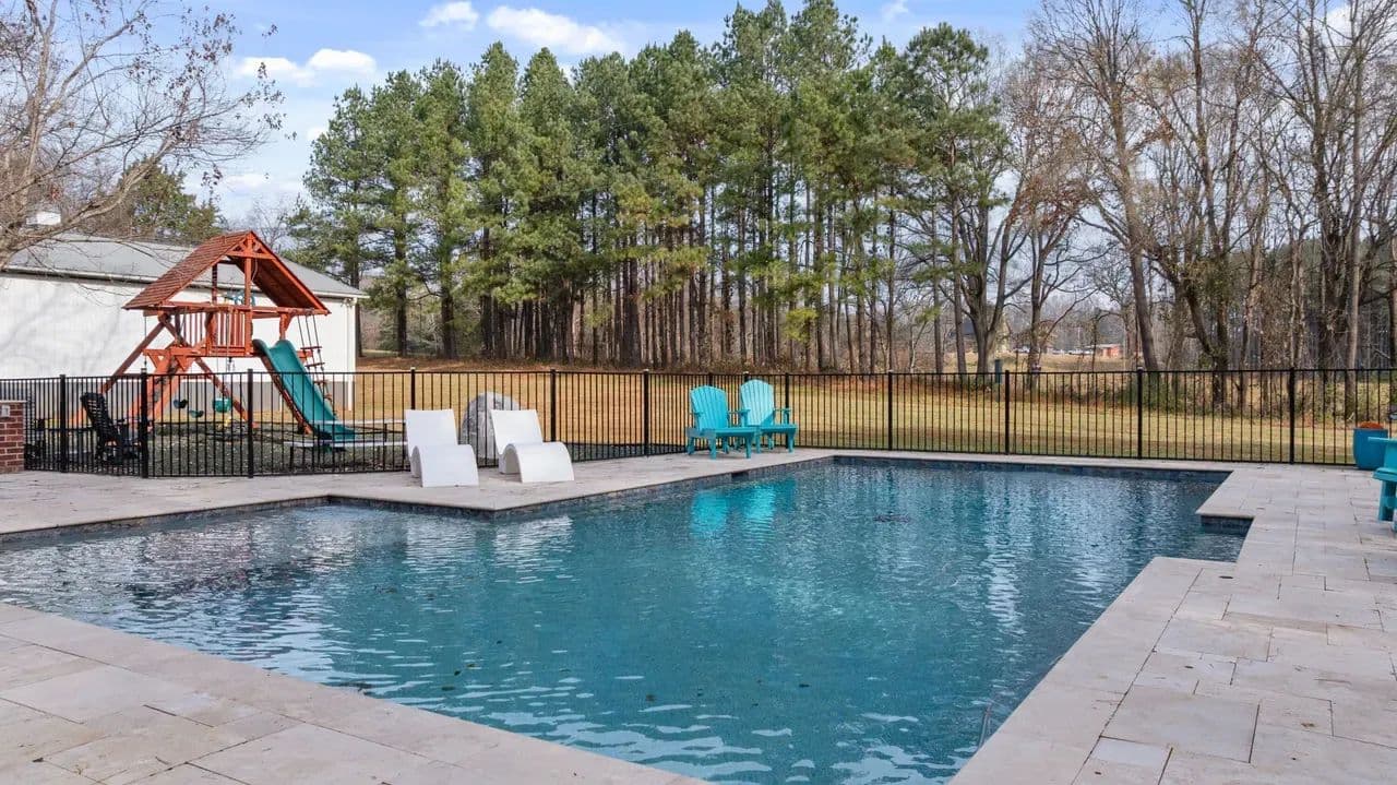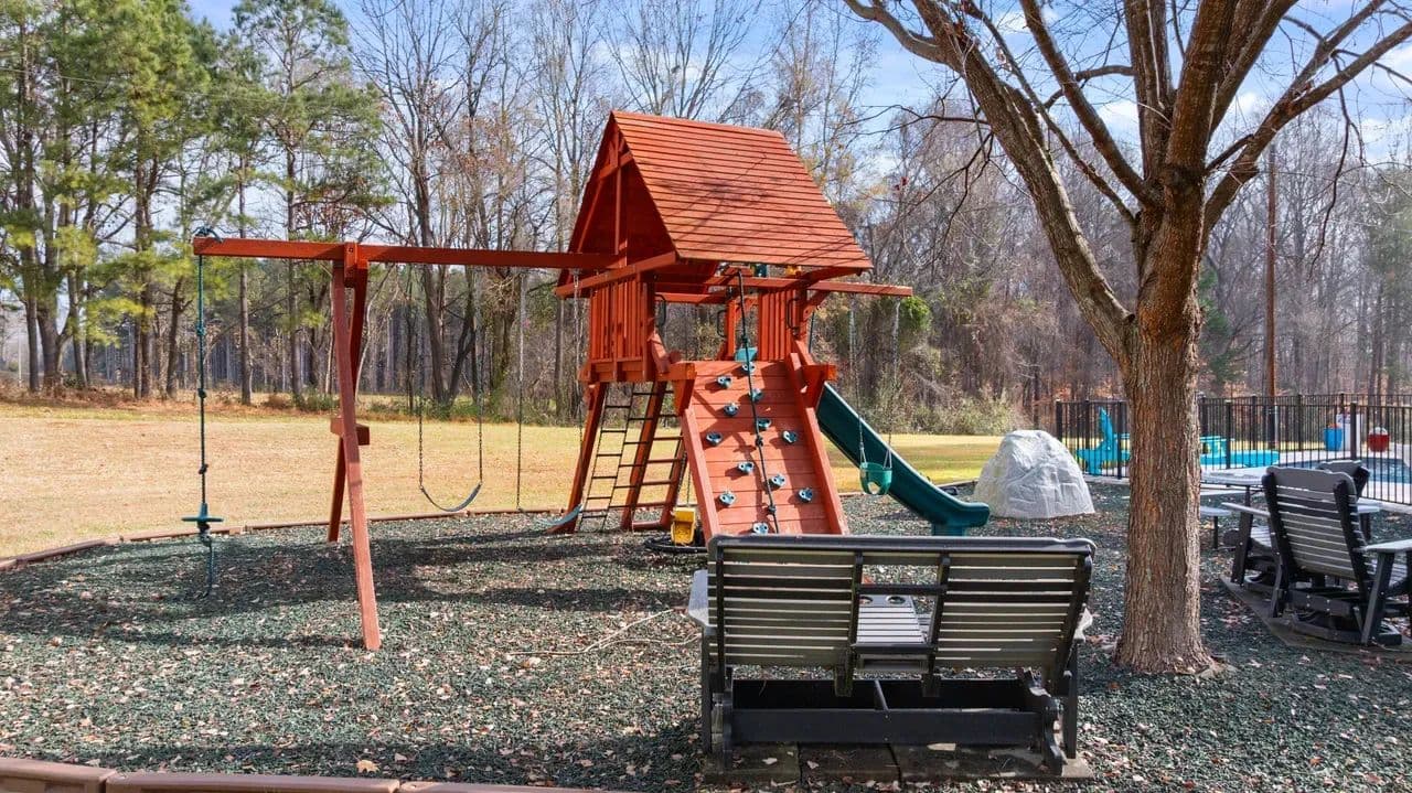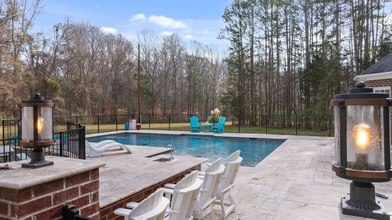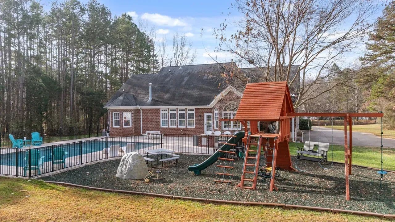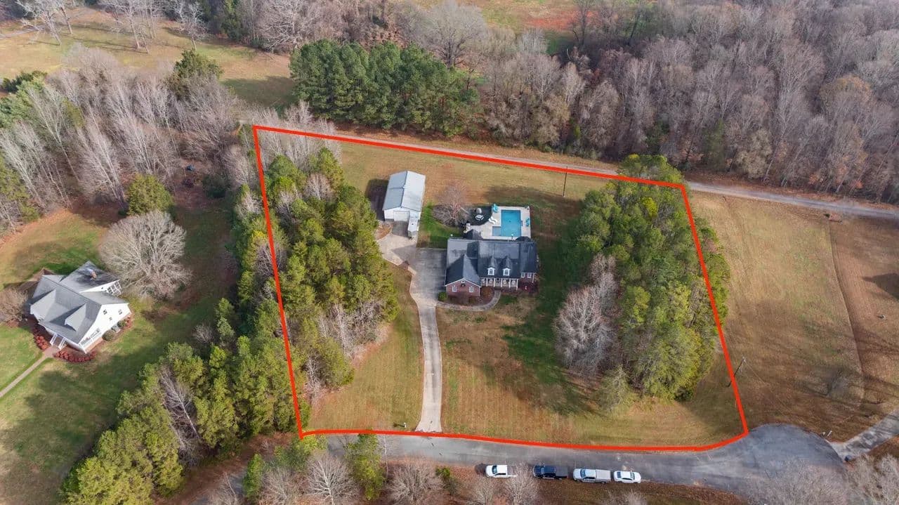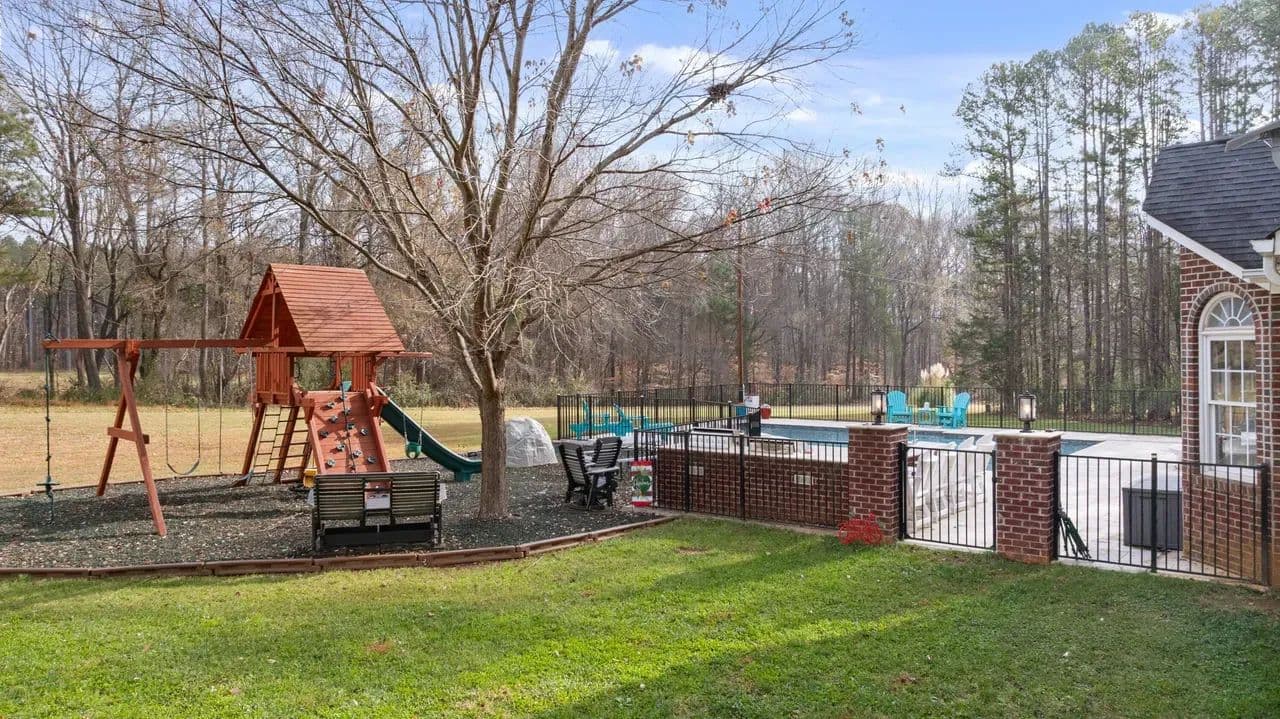Rare opportunity to find a gorgeous custom built four-bedroom, three bath home in a rural setting just minutes to Huntersville, Concord, and Charlotte. Located in the Town of Huntersville ETJ, this home boasts a large footprint on 2.3 acres of land. The main living area hosts the kitchen, two bedrooms, two baths, formal dining area and cozy fireplace in the main living room. Upstairs the bonus room has been finished for a playroom and has two beds and one bath. The updates to the home are immense. The owners encapsulated the crawl space, installed two new HVAC units in 2022, a saltwater pool and BBQ area installed in 2024, which are all permitted, and a fenced in back yard with playground. A rare find in this area for the quiet appeal of the neighborhood with city amenities minutes away. Outside there is a large workshop 30x50 with concrete and insulation. It offers ample room for storage or a workshop. There is also an additional 12x24 outbuilding for additional storage.