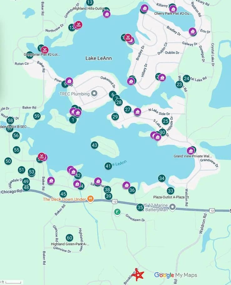 Prime Vacant Lot on Golf Course Frontage - Lake LeAnn Build your dream home on this beautifully cleared, buildable lot with direct golf course frontage, located near the 5th hole of the scenic Lake LeAnn Golf Course. Enjoy sweeping views of the fairway right from your backyard in a quiet, well-maintained neighborhood. This lot offers Association Access to both North and South Lake LeAnn, giving you the best of both worlds—golf in the morning, boating or fishing in the afternoon. With minimal prep required, this is an ideal site for a year-round residence or a seasonal retreat. Mooring sites available. Don't miss this rare opportunity to own a piece of paradise with golf course living and lake access in one of the most sought-after communities in the area. Call today for more info!