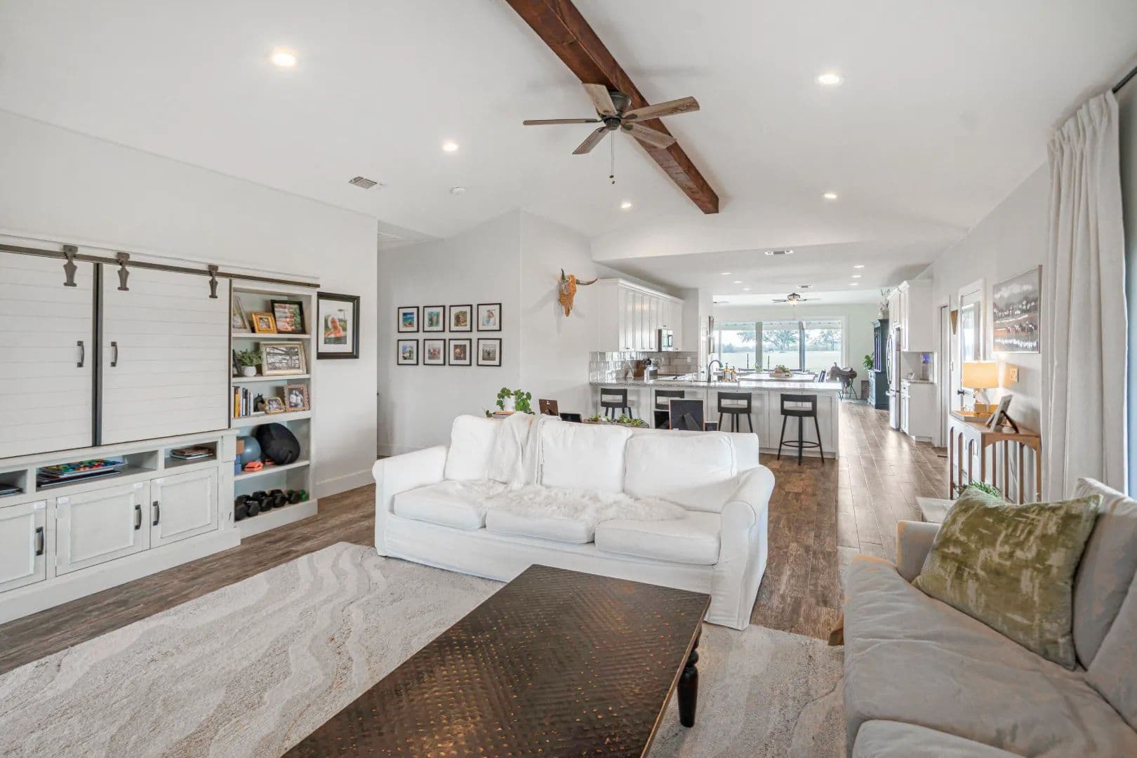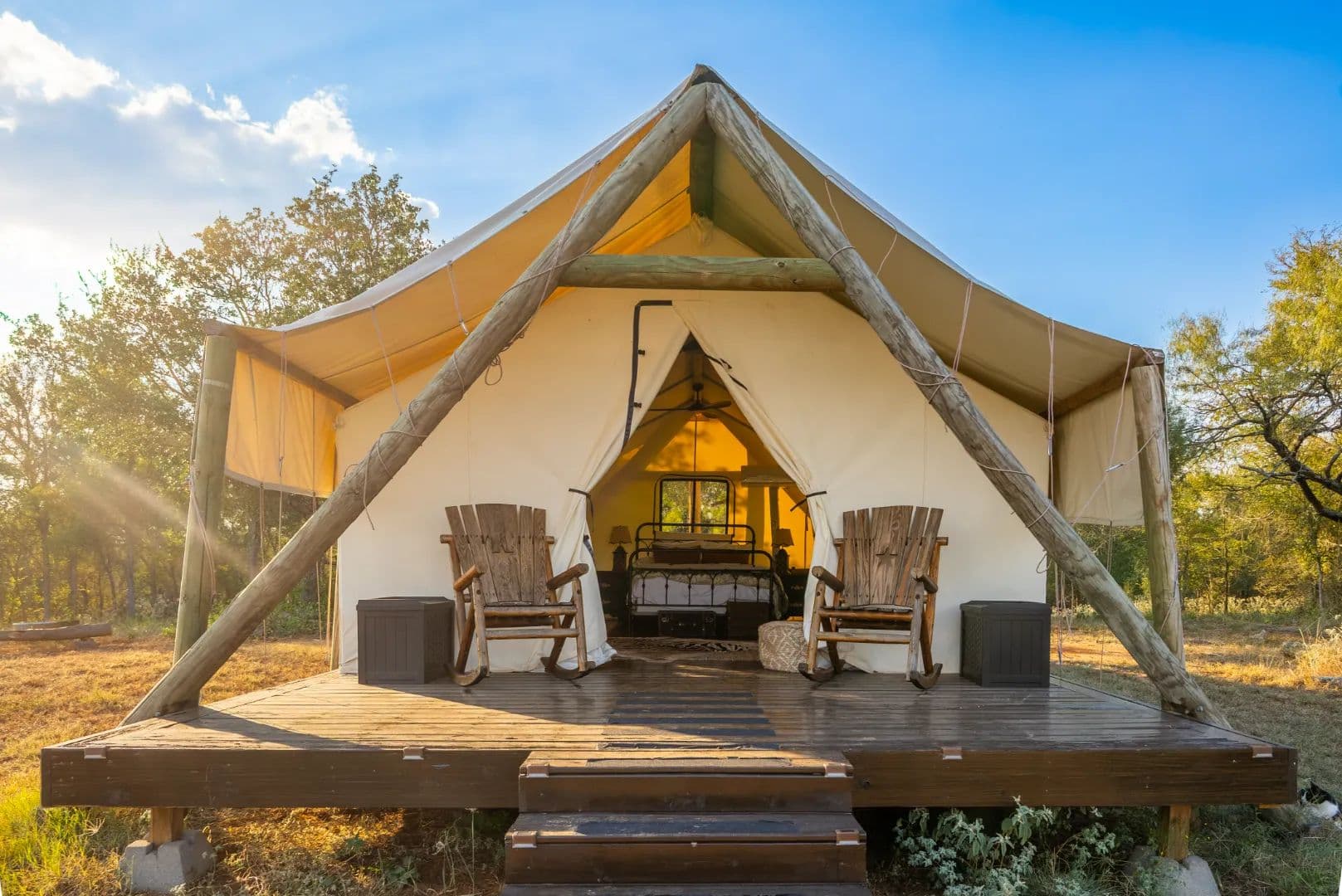 The primary home, built in 2013 and expanded in 2020, offers 2,949± SF with 4 bedrooms, 3 bathrooms, and wide porches that frame long views of the countryside. An attached 1,000± SF garage suite with its own bedroom, bathroom, and office provides privacy for guests, family, or caretakers. The second residence, completed in 2024, features 1,842± SF, 3 bedrooms, 2 bathrooms, and contemporary open-plan living—perfect as a guest house or income-producing rental. A glamping tent adds a unique retreat element, offering a luxury camping experience with modern finishes and full amenities.