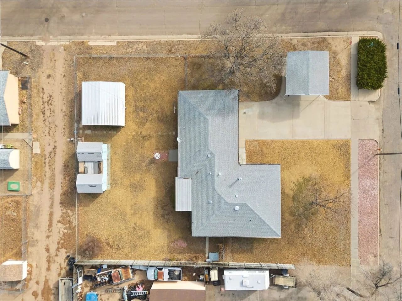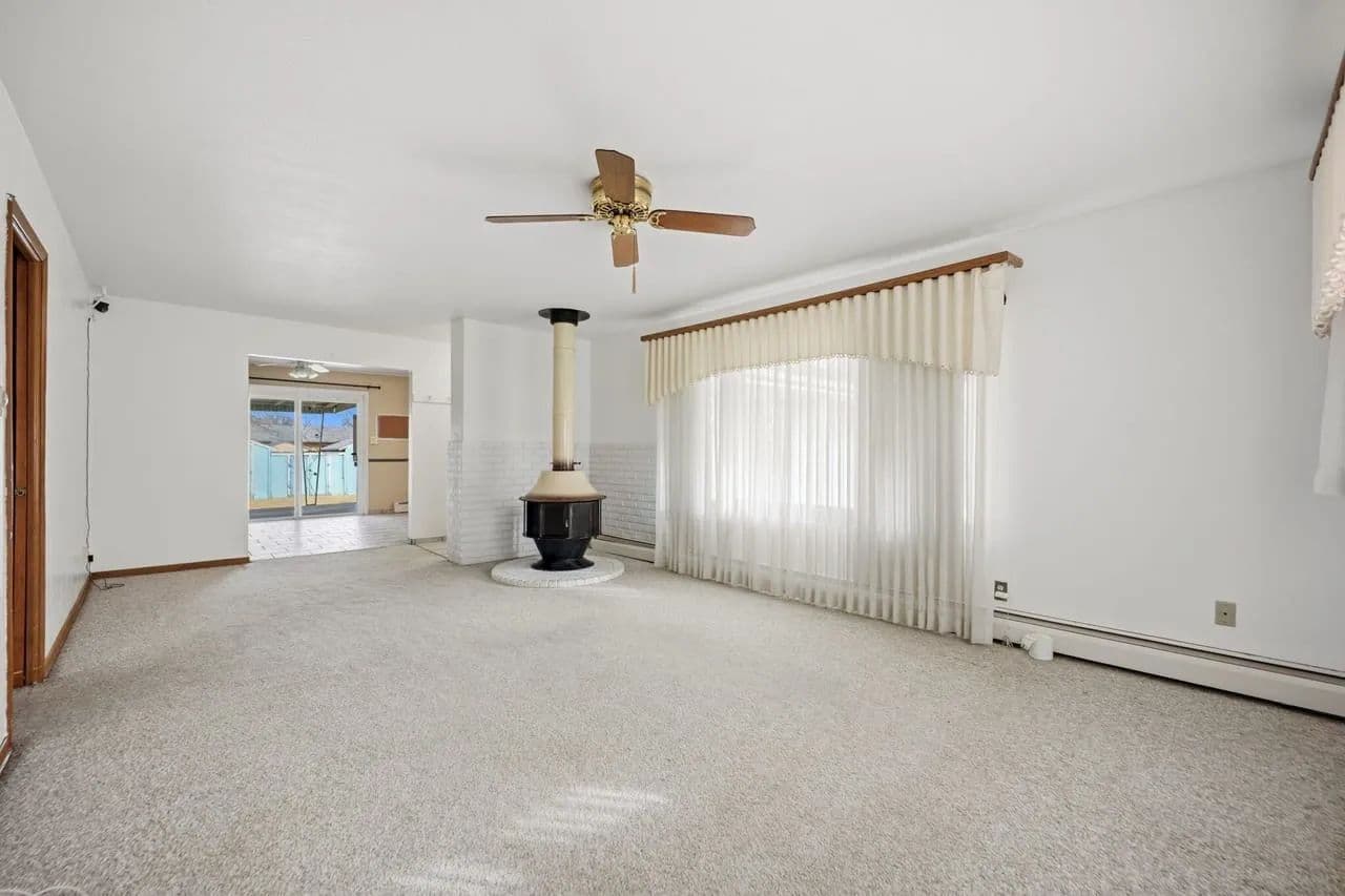 Welcome to this spacious corner lot property featuring a ranch style home with a partially finished/livable basement. As you enter the home you are met with a large living room and a cozy free standing, wood burning fire place. On the main level there are two bedrooms, a full bathroom, and an open concept kitchen with space for a large dining table. Sliding glass doors off of the dining room lead to the covered patio creating a great space for entertainment and an abundance of natural light. There is a main level laundry room and an attached 2 car garage. The basement has a bedroom, bathroom, family room/flex space, and an extra large storage room (unfinished). There are two, double car carports, one at the front of the home and one in the back yard. The back yard is fully fenced with chain link and has 2 storage sheds. This would make you a great property to call your own. Schedule your tour today!
