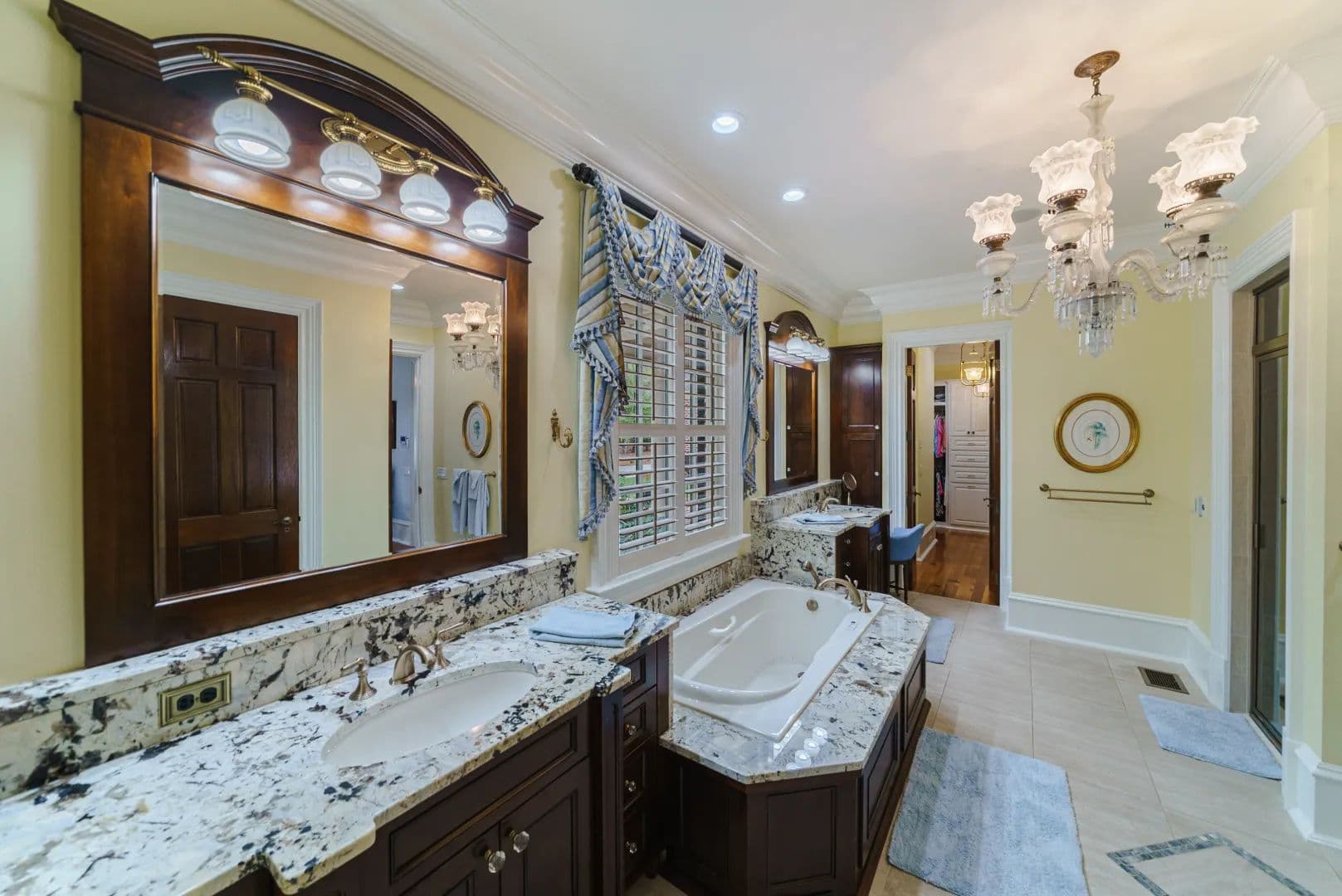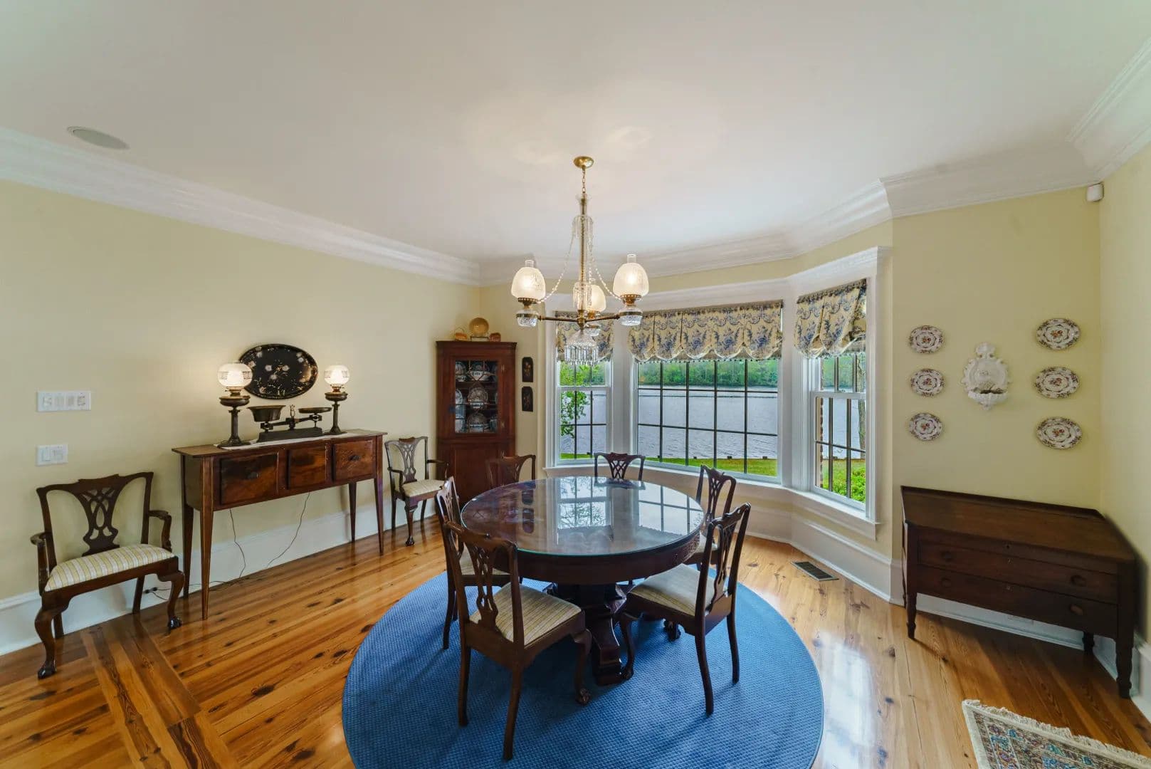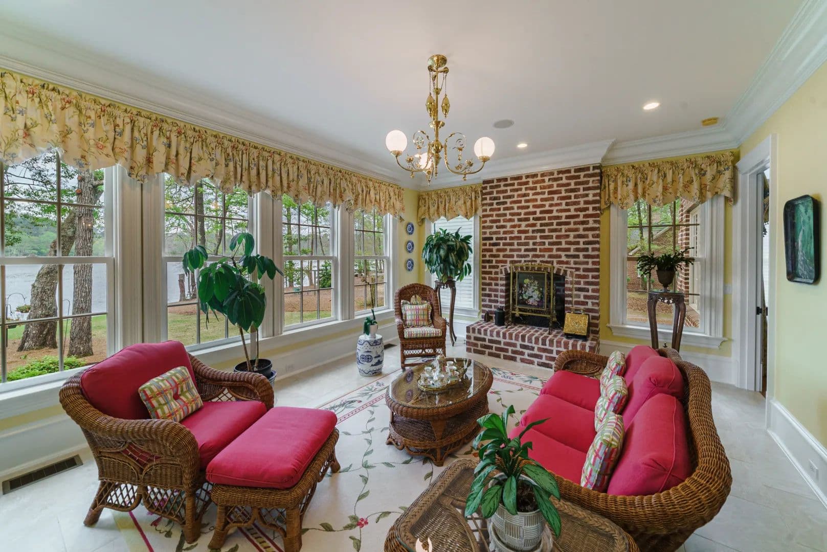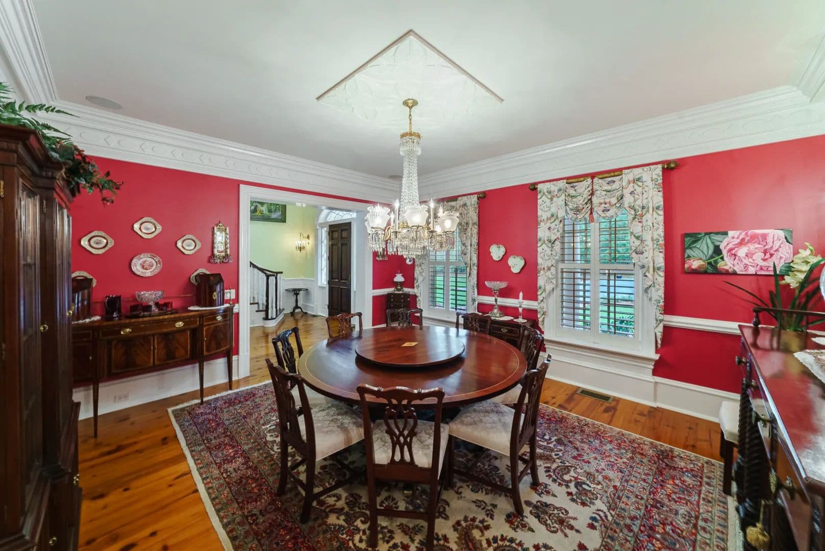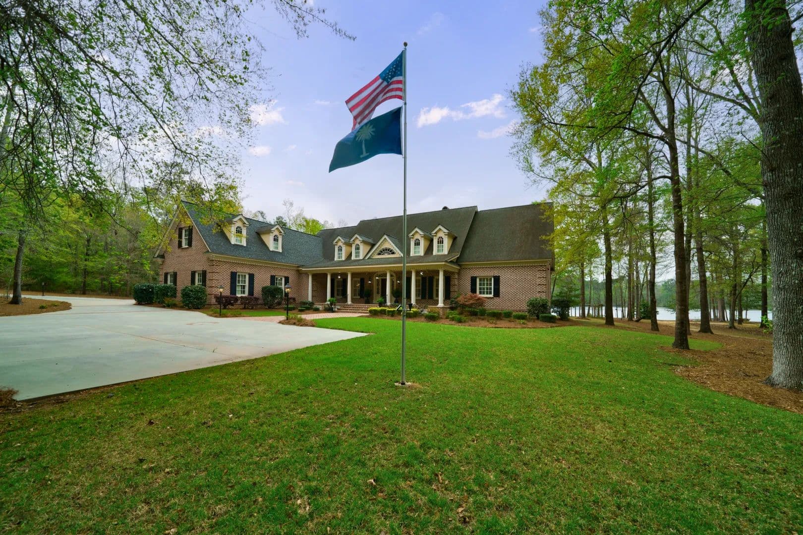 On a lakefront rise two Charleston-inspired estate homes designed for elegant, multigenerational living. The main residence, approximately 8,400 square feet, was built with hand-molded Old Carolina brick, a sweeping custom curved staircase, and an antique French crystal chandelier as its centerpiece. The second residence, approximately 5,500 square feet also, with an elevator, offers refined comfort: a potential use for scholars, artist-in-residence, or foundation programing.
