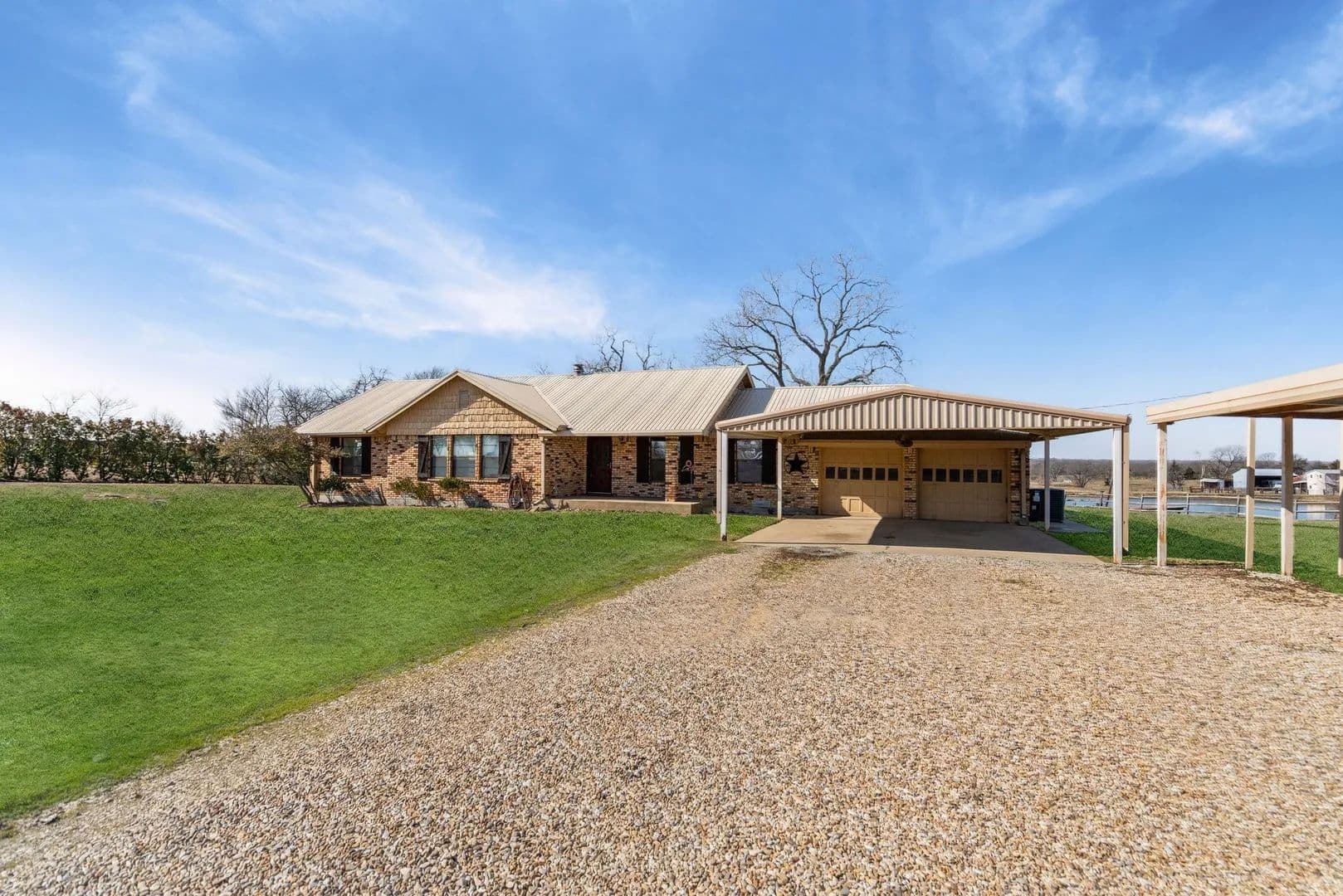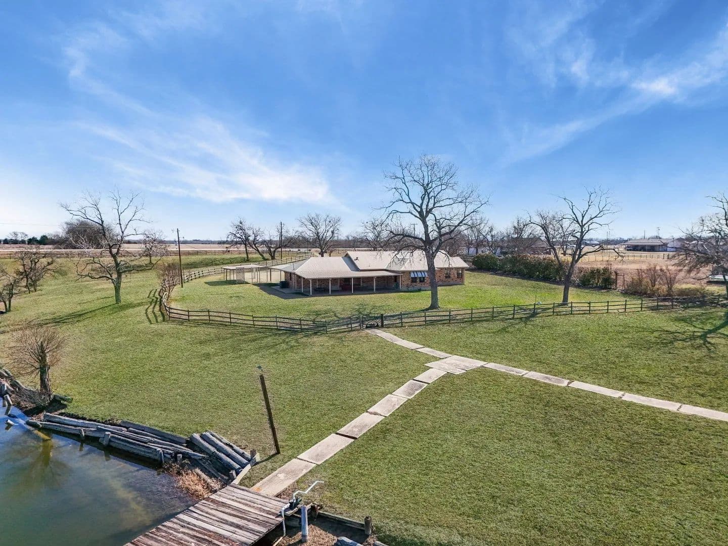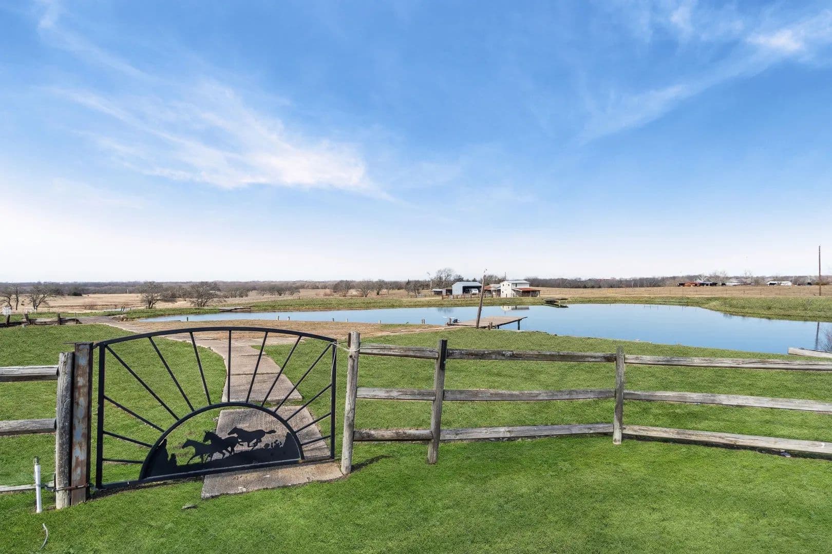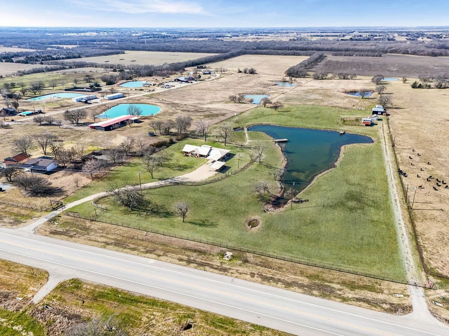 Don't miss this opportunity to purchase this amazing property with so much potential. This home sits on over 9 acres of cleared rolling topography. This home has the opportunity to be an amazing compound for a family who just wants to get away from it all. This property features a large approximately 2 acre lake that is fully stocked and has two fishing piers to enjoy anytime of the year. The property features two seperate entrances, a shop, a lean to for live stock or horses and another large shop all with electricity and water access and or connected. This property sits in the ETJ which means no city taxes and no HOA. This home needs some updates inside but is build on a firm slab foundation, with views that are unmatched.