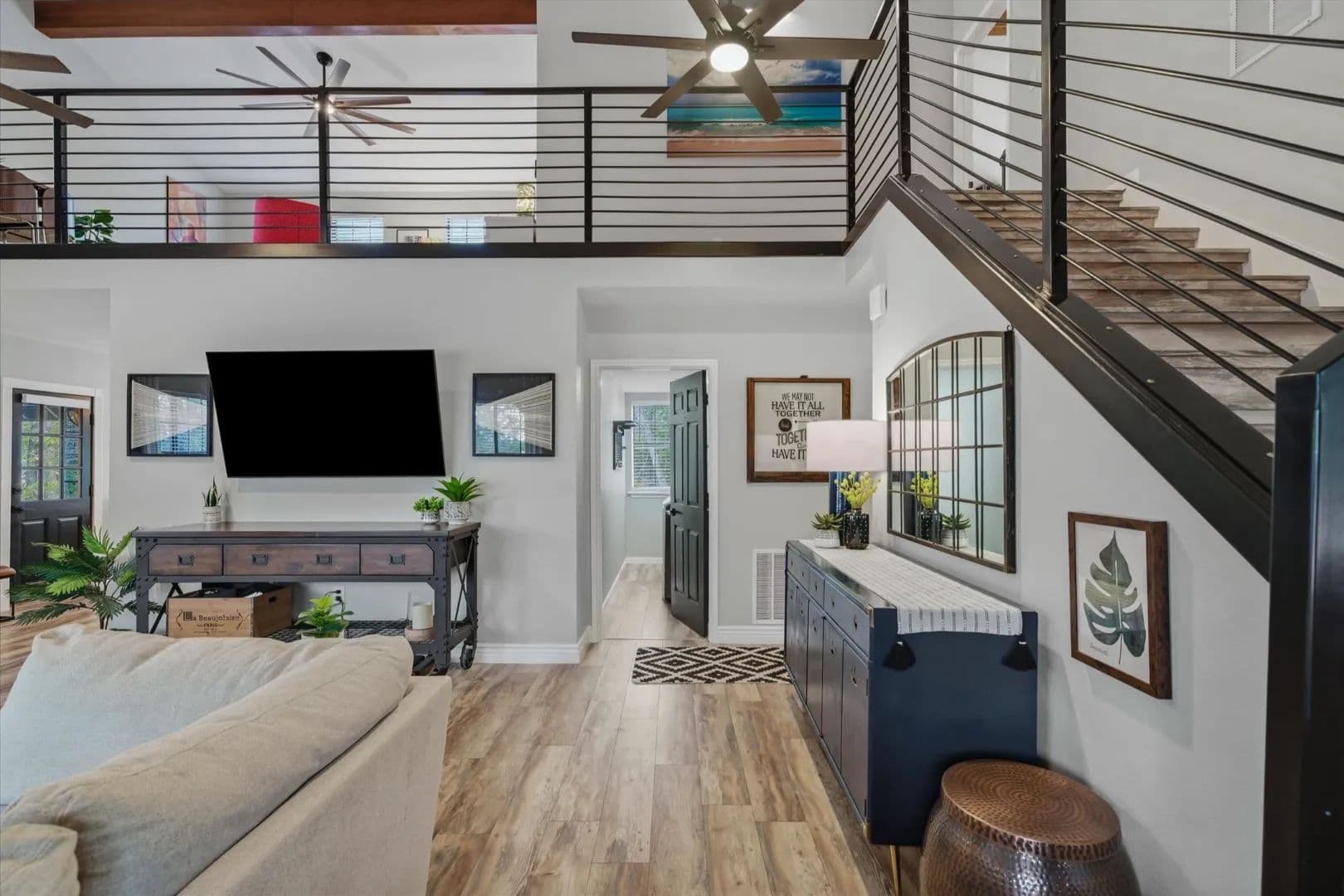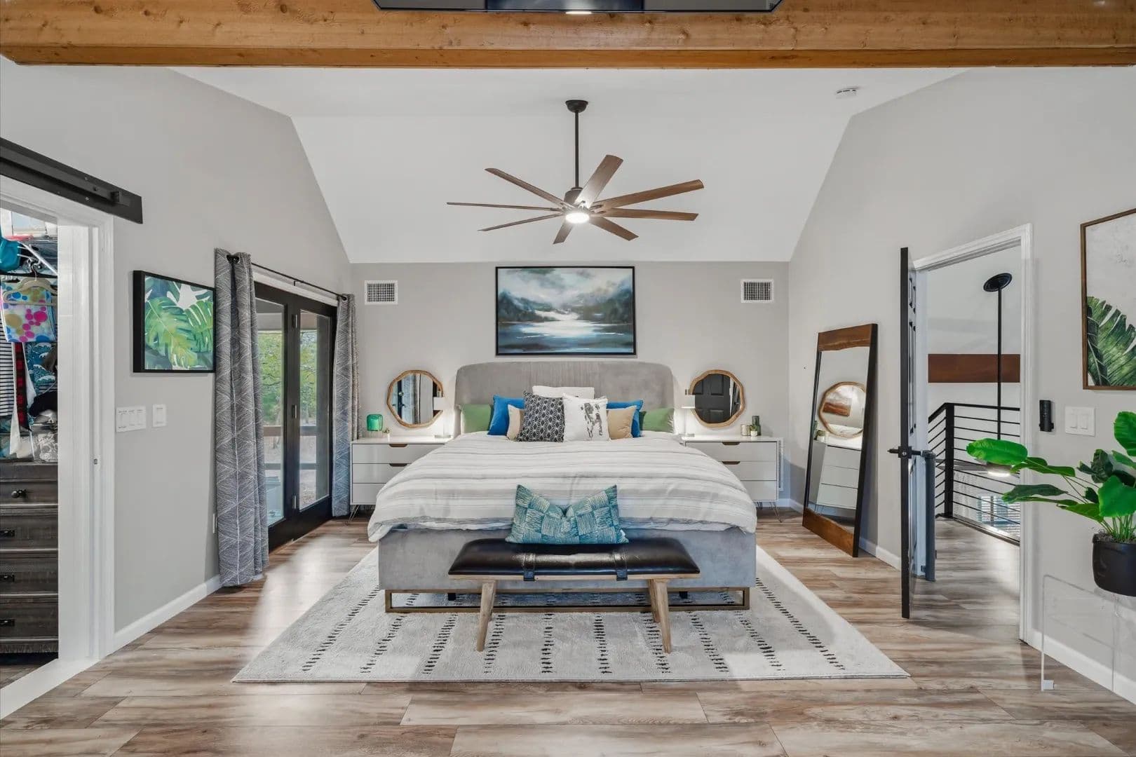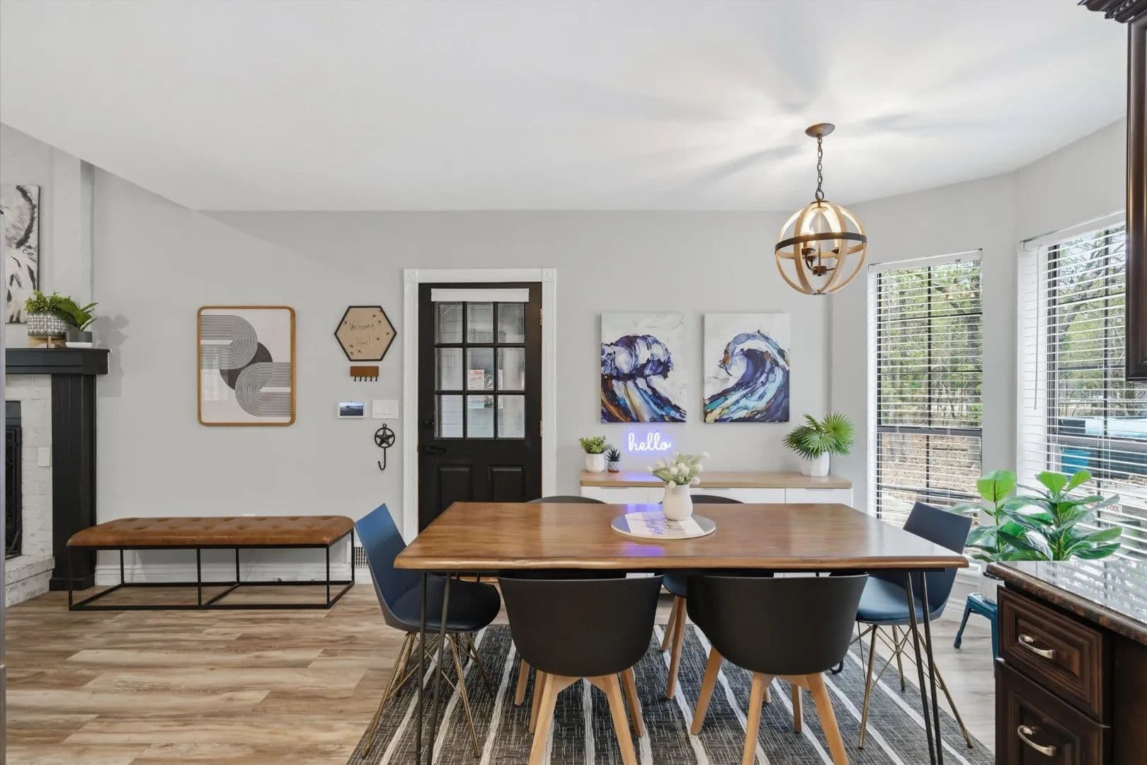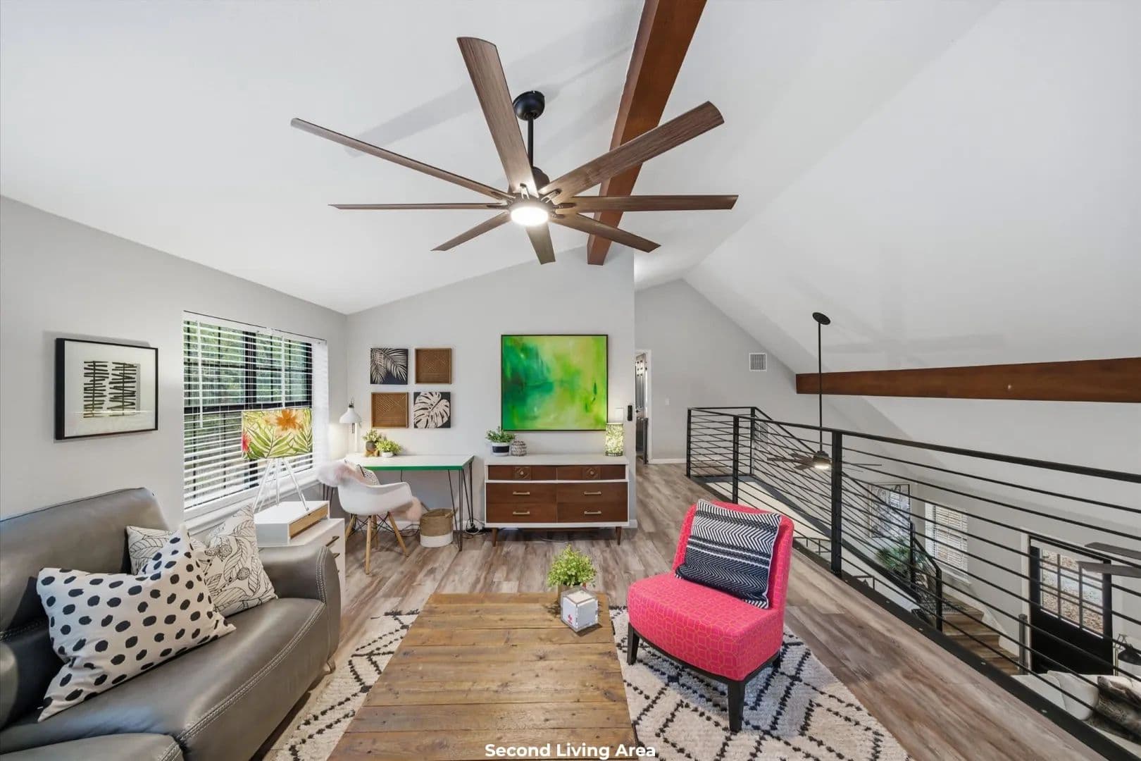 Surrounded by mature trees, private walking trails, and peaceful East Texas scenery, this beautifully remodeled home in Poetry, Texas delivers a lifestyle few properties can offer. Nestled deep in the woods within a highly sought after area, this home blends privacy, character, and modern comfort with thoughtful upgrades throughout. Bold cedar plank siding, recently replaced roof & HVAC with duct work, whole home water filtration and softener system, monitored wireless alarm, and oversized front and back decks create a striking first impression and invite outdoor living year round. Inside, soaring vaulted ceilings with exposed wood beams, modern railings, and expansive windows flood the home with natural light and showcase the surrounding wooded views. Main living area is anchored by a cozy fireplace and flows seamlessly into the kitchen and dining space, creating an inviting layout ideal for everyday living and entertaining. Kitchen features granite, SS appliances, a pantry, and generous workspace designed for functionality and style. Home offers 2 spacious primary suites, each with large closets & private ensuite baths. One primary includes a dedicated office or nursery with oversized windows, providing a quiet and inspiring space for working from home or creative use. 2nd primary suite serves as a private retreat with dramatic ceilings, wood beam accents, and direct access to the outdoors. Upstairs loft style living area overlooks the main living room with soaring ceilings, offering