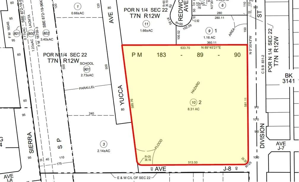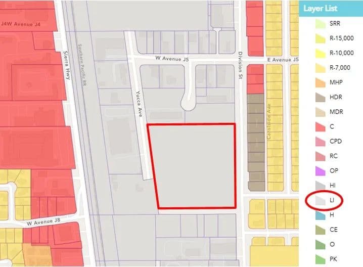 Prime light industrial in-fill development site with all utilities available at or near the property (Buyer to Verify). This property offers approx. 581 feet of paved frontage along Division St. and approx. 390 feet along existing Yucca Avenue. This 8.31+/- acre offers existing curb & gutter, sidewalk, and street improvements along Division St. and Yucca Avenue. Property is zoned Light Industrial which is intended to promote a plethora of different manufacturing, R&D, and warehouse skilled labor into the growing aerospace industry. Property is within other light industrial, commercial & residential development. Site is also located within an *“Opportunity Zone" where favorable tax benefits are available for investors/developers! Location is just minutes away from Lancaster Metrolink Station and the freeway.