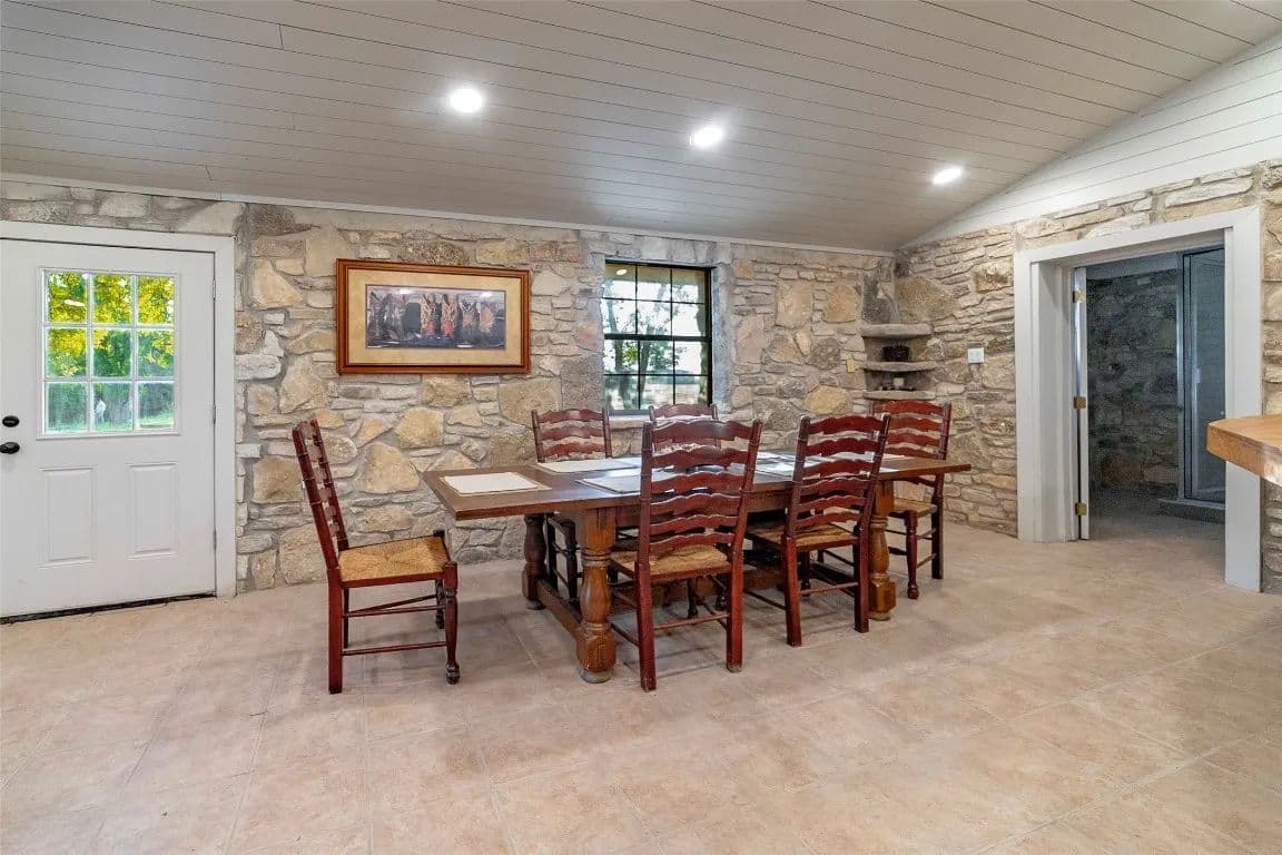 Historic 2,876± SF stone home (built 1875) with restoration potential, barns, storage sheds, two active water wells, and cross-fencing. Recreational features include a 989± SF Creekside cabin, 1,800± SF pavilion with restrooms, RV hookups, and excellent hunting, fishing, swimming, and more. Strong wildlife population and 1-d-1 ag exemption in place (cattle).