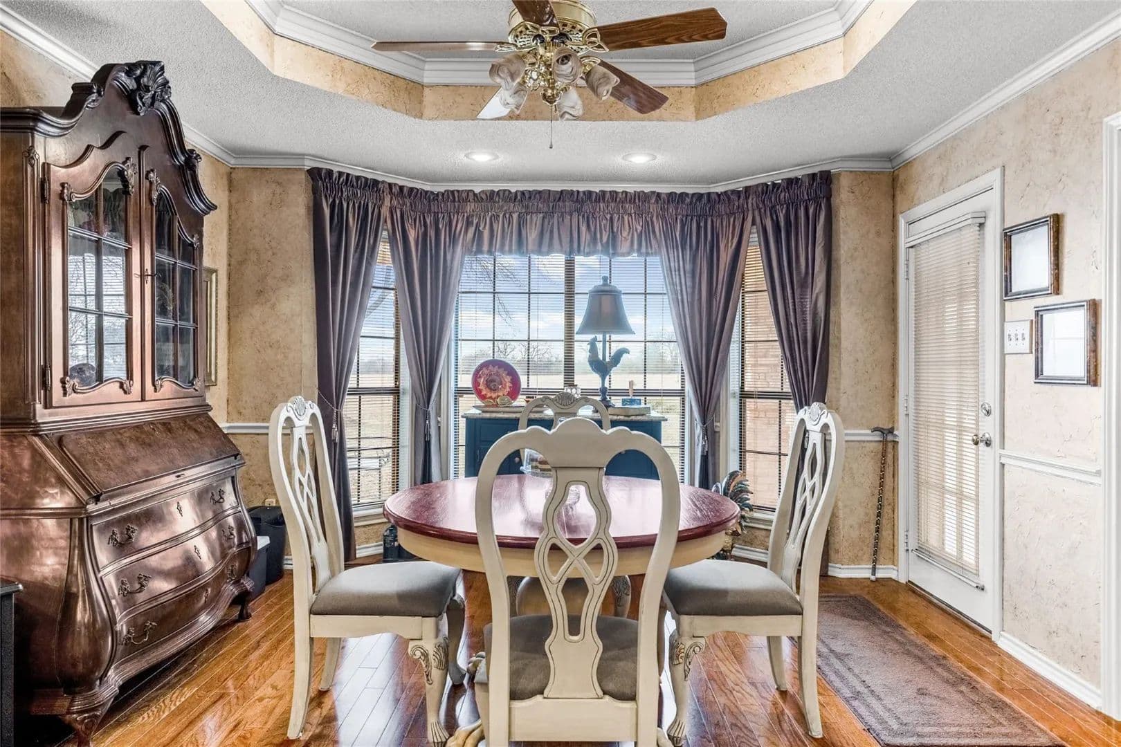 Luxurious wood floors flow throughout the foyer and halls. A vaulted formal dining room and separate breakfast room give you space for entertaining. The crisp-white gourmet kitchen is a chefs dream with granite countertops, double oven, a mini cooler, breakfast bar, and a walk-in pantry.
