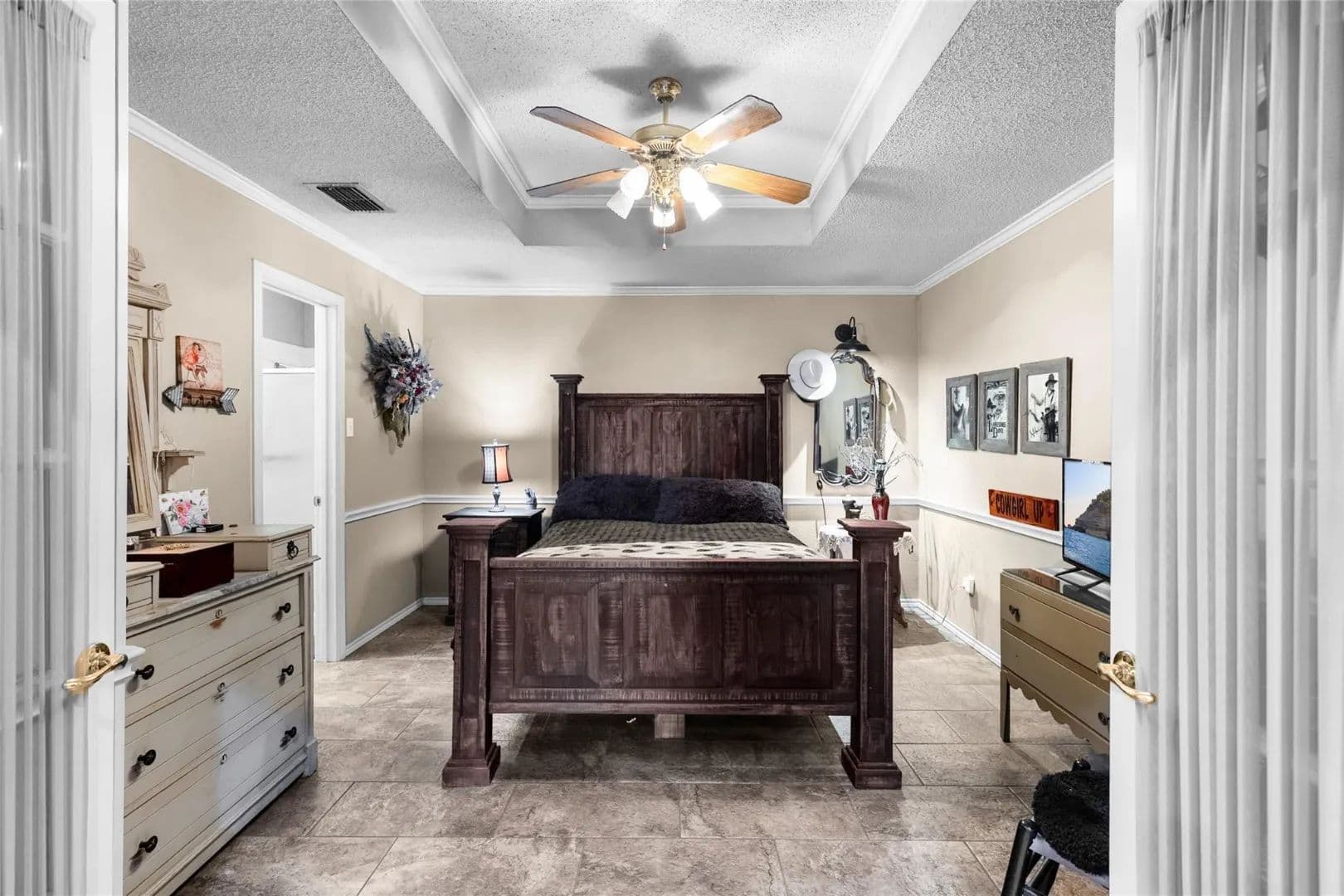 Retreat to a primary suite featuring its own private fireplace and a double-sink vanity. Bring your outdoor furniture and take advantage of the views from a large covered back patio!