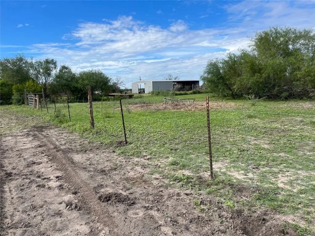 Approximately 121 acre ranch country living. Property is fenced and cross fenced. Property borders a wet creek on the south boundary. King Ranch property is across the creek. Game animals travel this creek. Three ponds with 2" waterlines. Great dove hunting. Deer, hogs, varmits. The one acre homestead has a 3/2 all electric mobile home. Barn and storage building. Also a pool house with one bedroom adjacent to the pool. Has one waterwell. South Texas Water Authority provides water in this area. Buyer to verify access. This offering is west of Bishop, Tx. off Hwy 70 at the end of CR 91, south of CR 6. Currently 1-D-1 open space tax exemptions. Surface sale only.