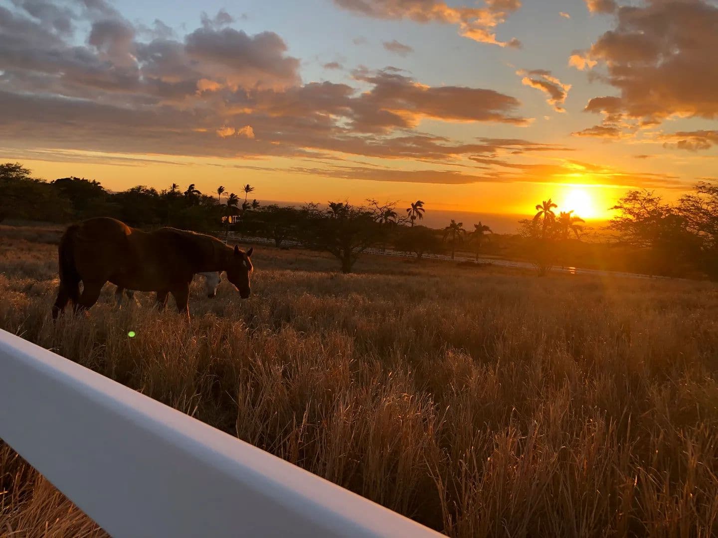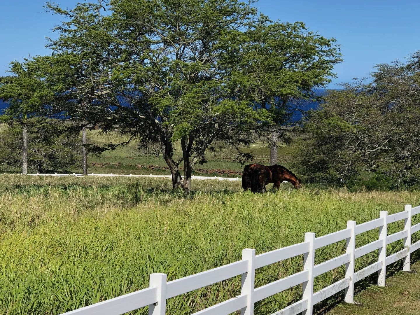 There is a small park overlooking Puakea Bay that is a great spot to watch for whales in the winter time. An equestrian easement surrounds the perimeter of the ranch and is almost 5 miles long. Great place for a ride or a walk with your dogs.