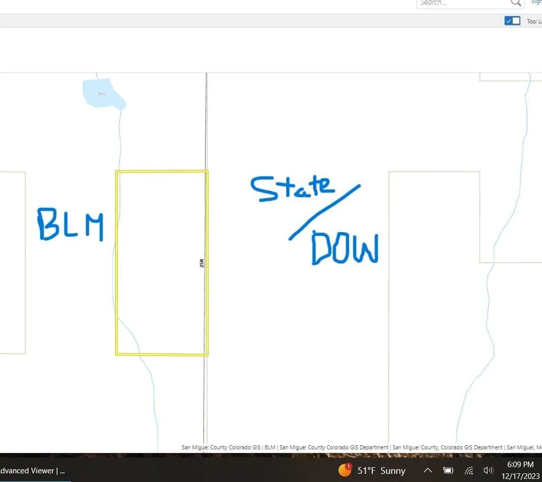 THE LEAST EXPENSIVE LAND IN THE MLS search 20+ ac. This 80 acres is surrounded by BLM on 3 sides and the State Wildlife Area on the fourth, while located on an easy gravel road, 1-2 miles from the paved HWY 141. Quiet solitude and big views of the La Sals can be yours to enjoy in Dry Creek Basin. Also in view is the Lone Cone &Pony Draw. Elk, deer, antelope, sage, wildflowers. Power lines near by. I dont know the cost to establish power per SMPA. Solar may be the cheapest option for power. Fenced on 2 sides. with a 1/4 mile of fence running north/south. SE Corner is yellow cattle guard. The San Juan Hut System has mountain bikers riding near the property, through Dry Creek Basin on their way to Bull Canyon and Paradox. See addendum