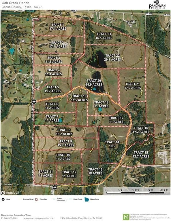 13.7 acre corner tract in Oak Creek Ranch. This property has a lot of mature oak trees with a seasonal creek making up your northern property line. With over 40 ft of elevation change on the property as well, it feels a lot bigger than 13.7 acres. Small pond on the southern side of the property that could easily be dug out for a bigger pond. Minutes from downtown Gainesville. Come see what Oak Creek Ranch is all about!