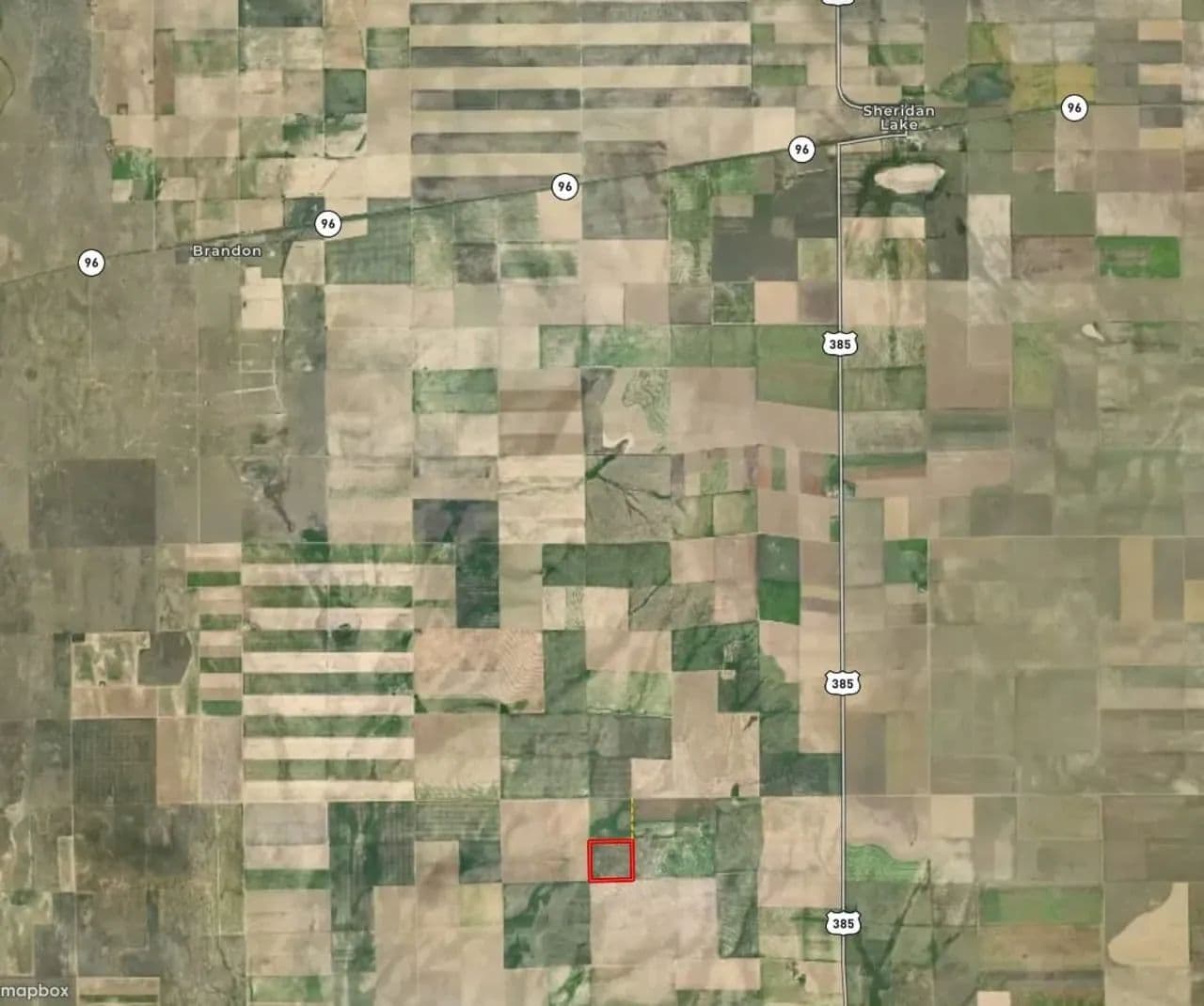 From Sheridan Lake, Colorado take Highway 385 south approximately 7.5 miles until you reach County Road GG then turn right going west approximately 2.5 miles until you reach the recorded easement providing access to the northeast corner of the property.