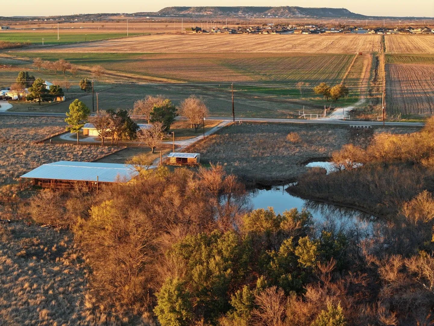 Welcome to this well-maintained country property offering the ideal blend of rural charm and convenient location. This 3-bedroom, 2.5-bath older home sits outside the city limits of Tuscola while being less than one mile from town and directly across the street from the brand-new Jim Ned Ag Barn. The home has been very well cared for and can be comfortably lived in as-is, or updated to create a fantastic fixer-upper with endless potential. Mature pecan trees and pine trees surround the house, providing shade, privacy, and a classic country setting. The property features a water well, a nice tank (pond), and Jim Ned Creek running through it, adding both beauty and functionality for livestock, recreation, or simply enjoying the outdoors. Up to 30± acres are available, offering plenty of room for grazing, farming, or expansion. An impressive 85’ x 75’ older cattle and horse barn with a tack room adds significant value and character, making it ideal for horses, cattle, equipment, or hobby use. With its water features, barn setup, proximity to town, and strong agricultural location, this property is a rare opportunity for country living with convenience.