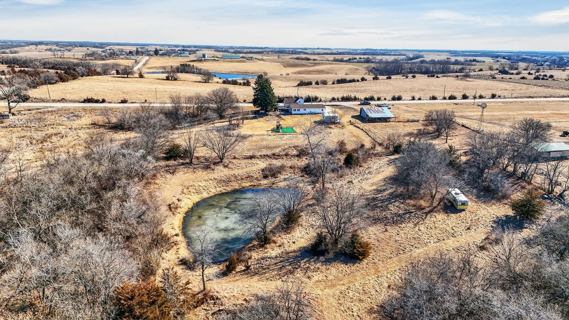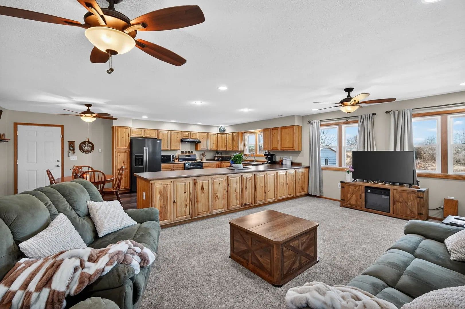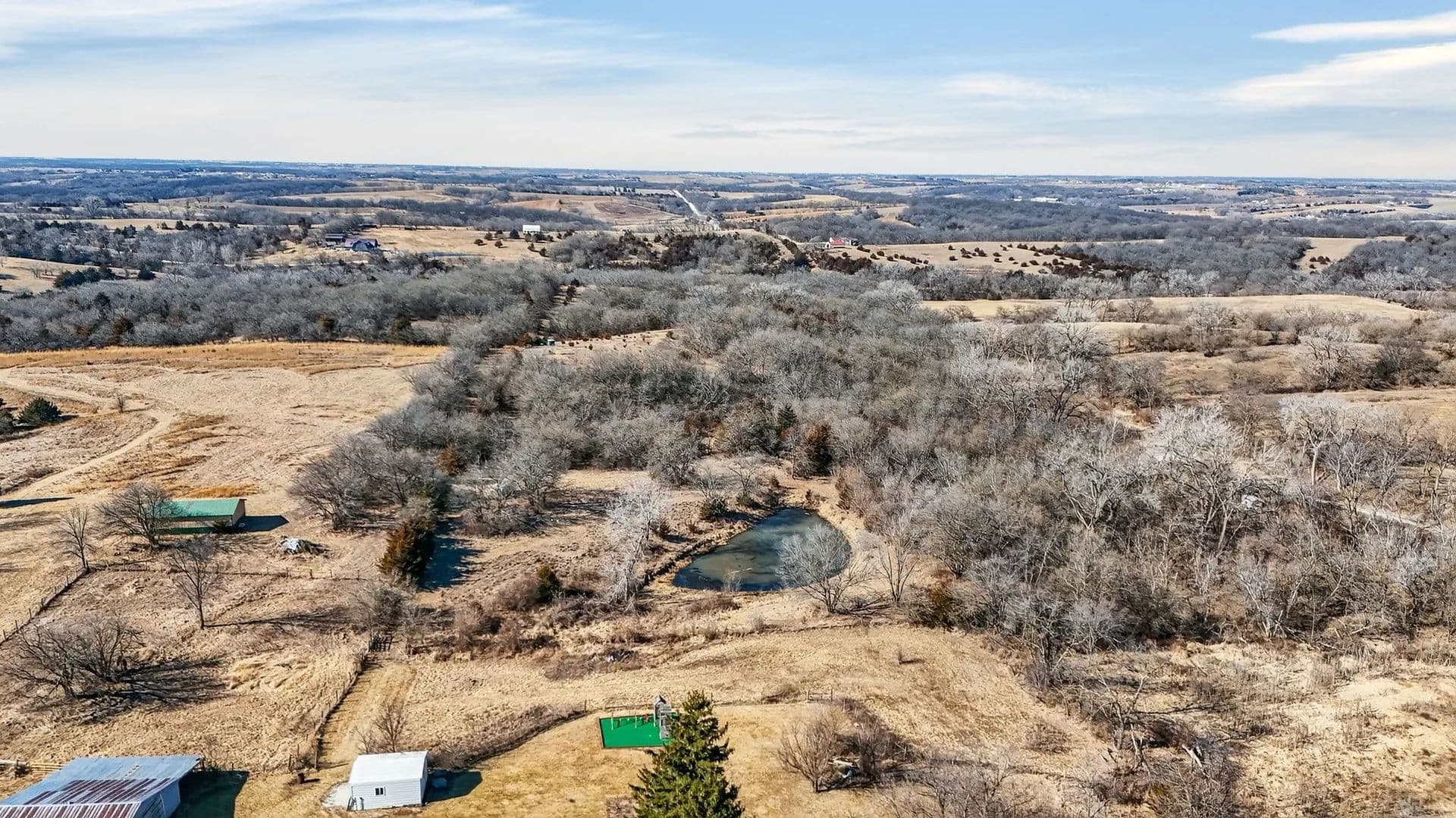 The land features a picturesque pond, wide open spaces, and endless room to explore, making it ideal for hunters, outdoor enthusiasts, and anyone craving room to roam. After a day outside, come home to a warm and inviting interior designed for everyday comfort and easy entertaining.