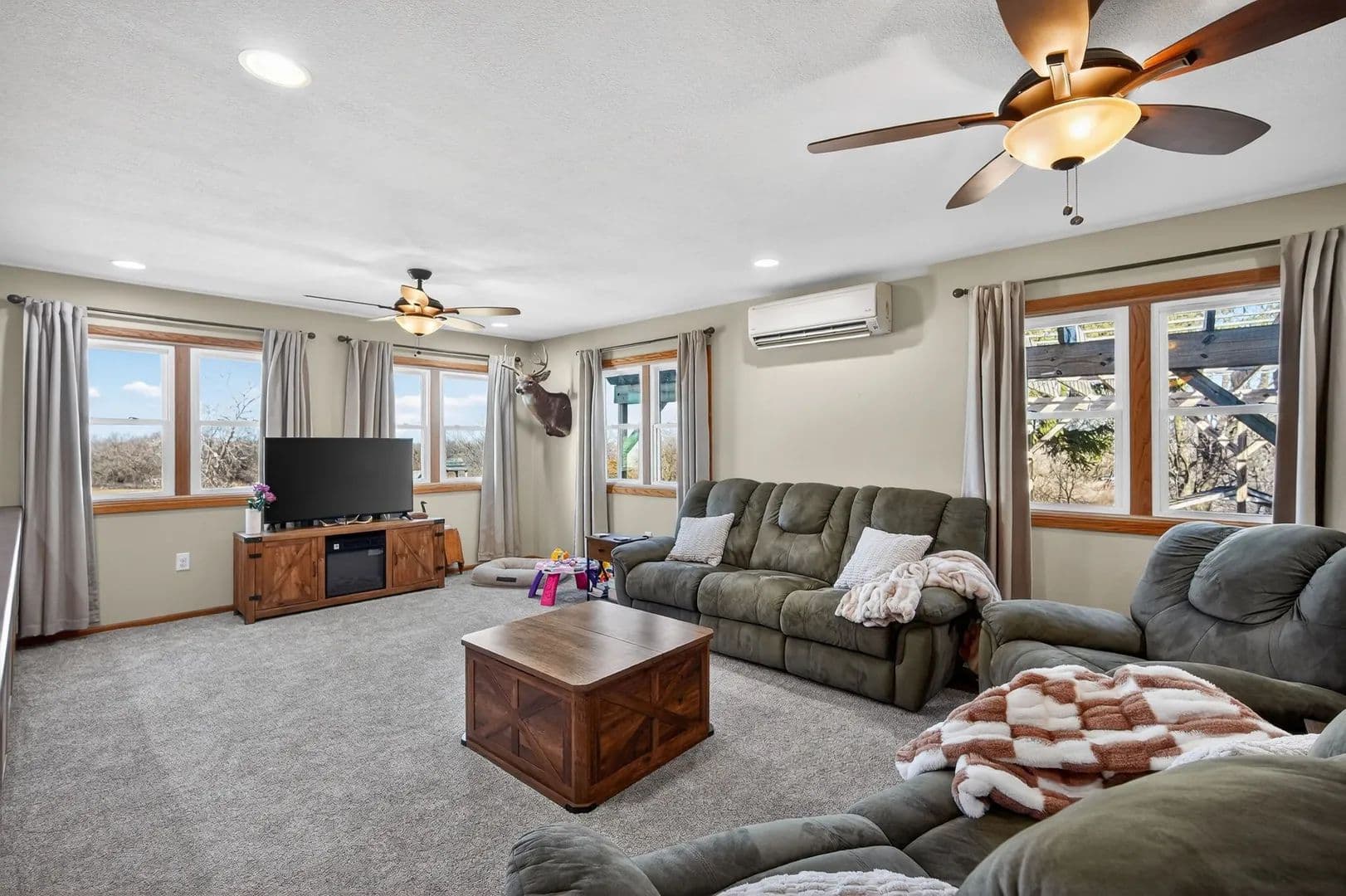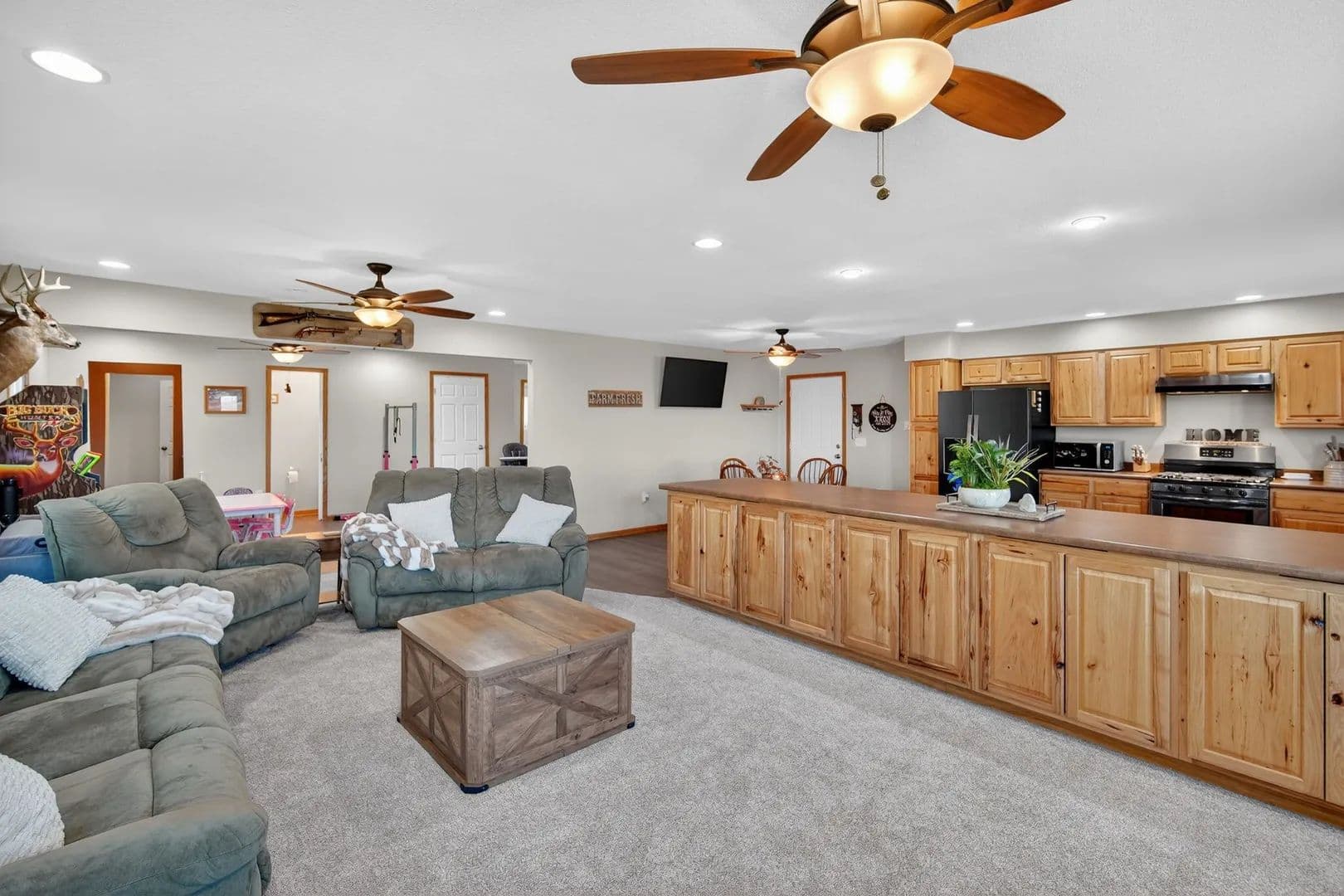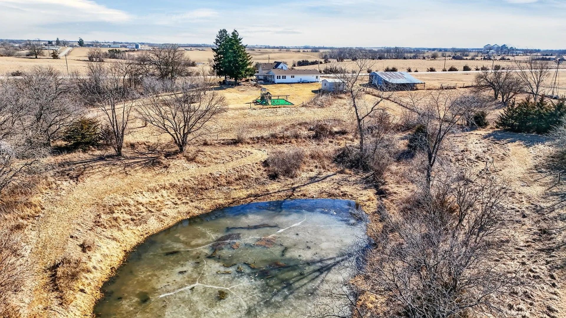 The land features a picturesque pond, wide open spaces, and endless room to explore, making it ideal for hunters, outdoor enthusiasts, and anyone craving room to roam. After a day outside, come home to a warm and inviting interior designed for everyday comfort and easy entertaining.