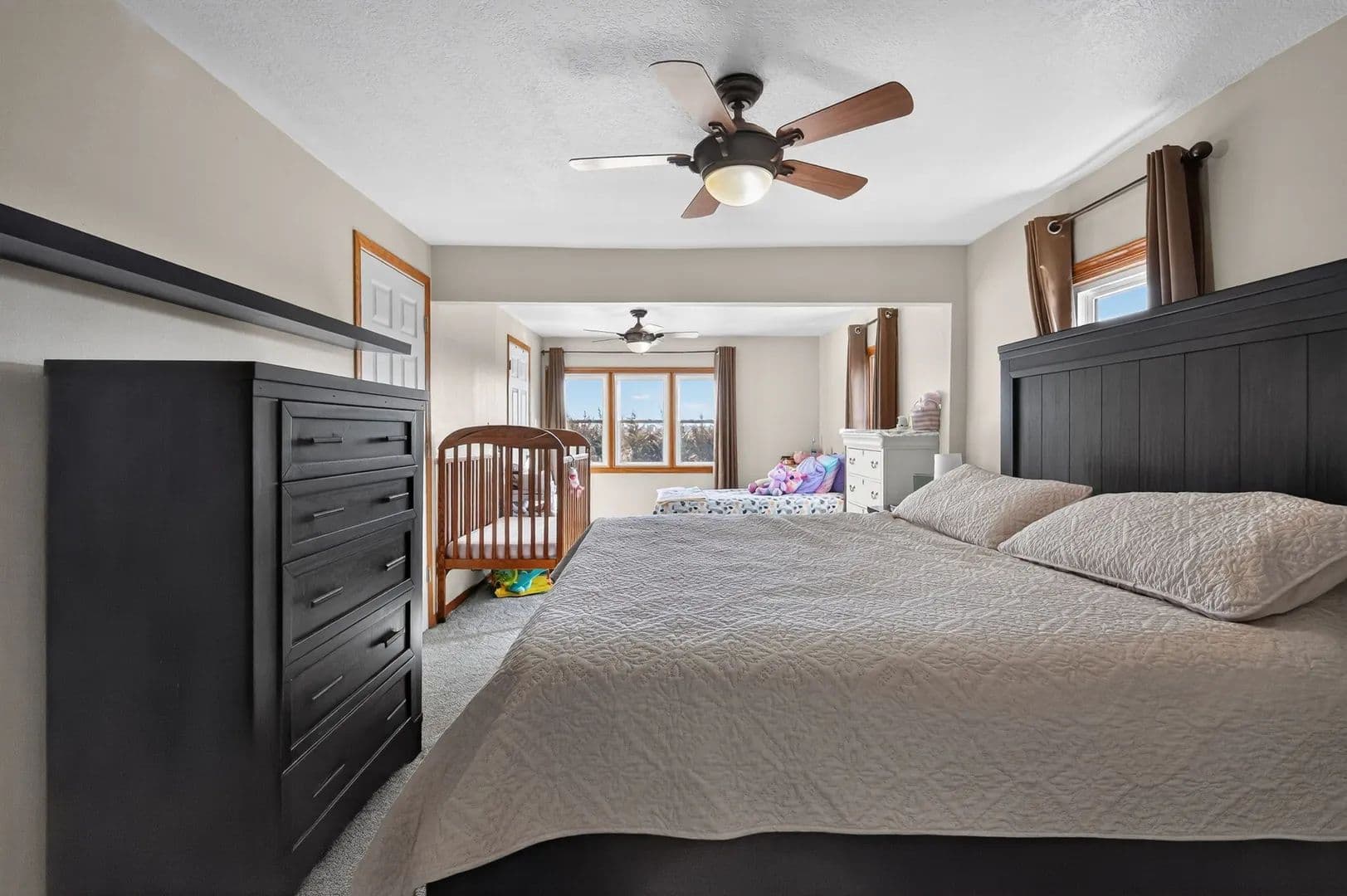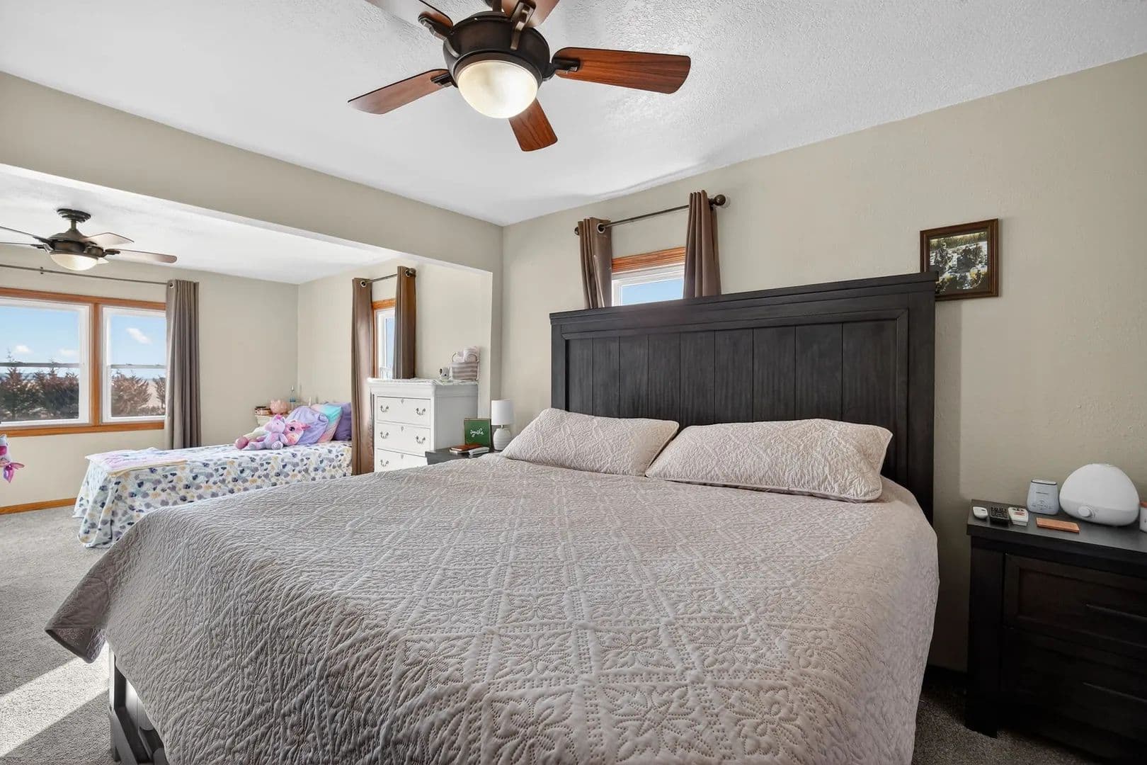 The main level offers a spacious bedroom with ensuite, convenient main-floor laundry, and a welcoming dining and living room, perfect for gathering with family and friends. Upstairs, you'll find a primary suite with its own ensuite, creating a private retreat of its own. The lower level includes a non-conforming bedroom and ¾ bathroom, providing flexible space for guests, hobbies, or a cozy getaway.