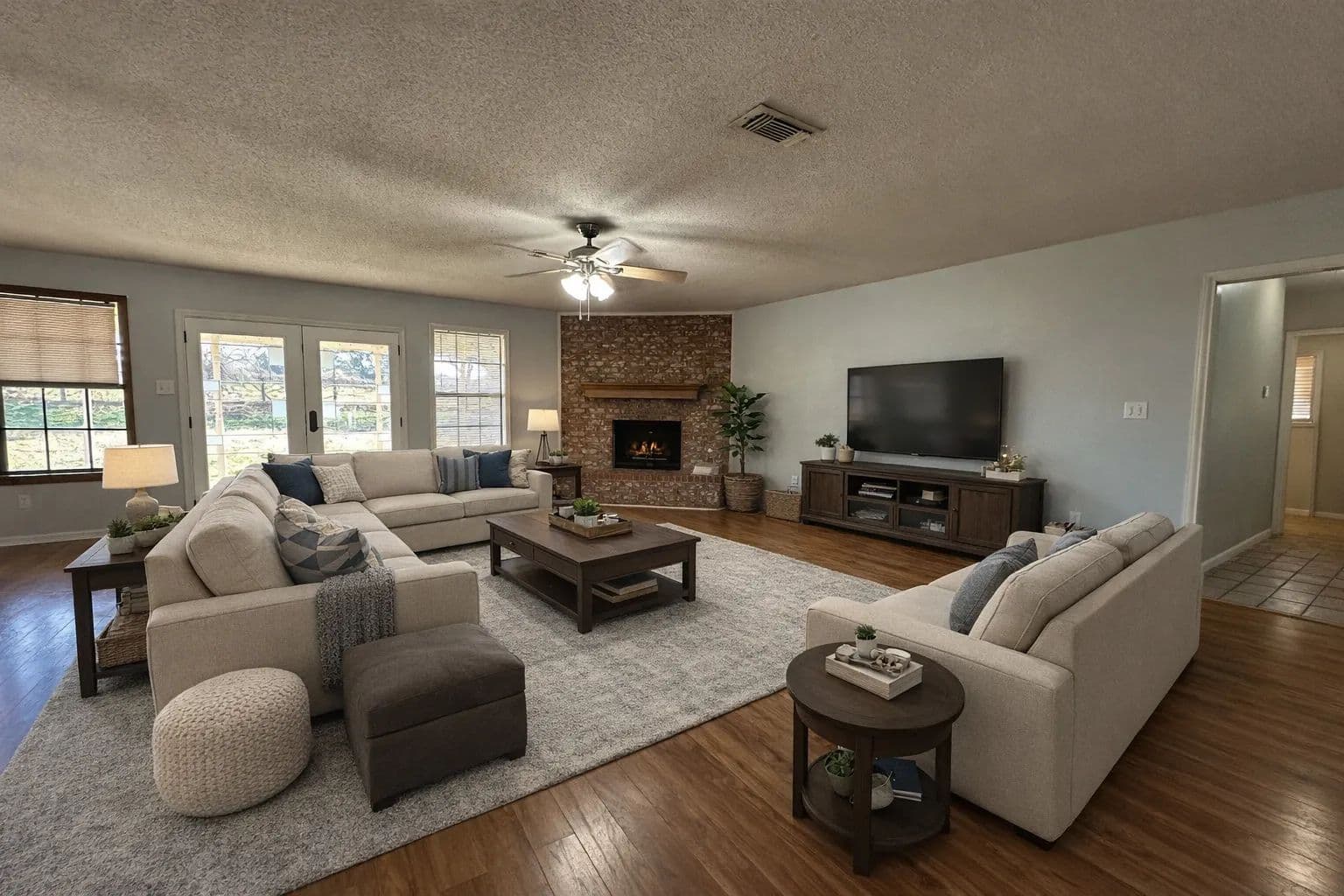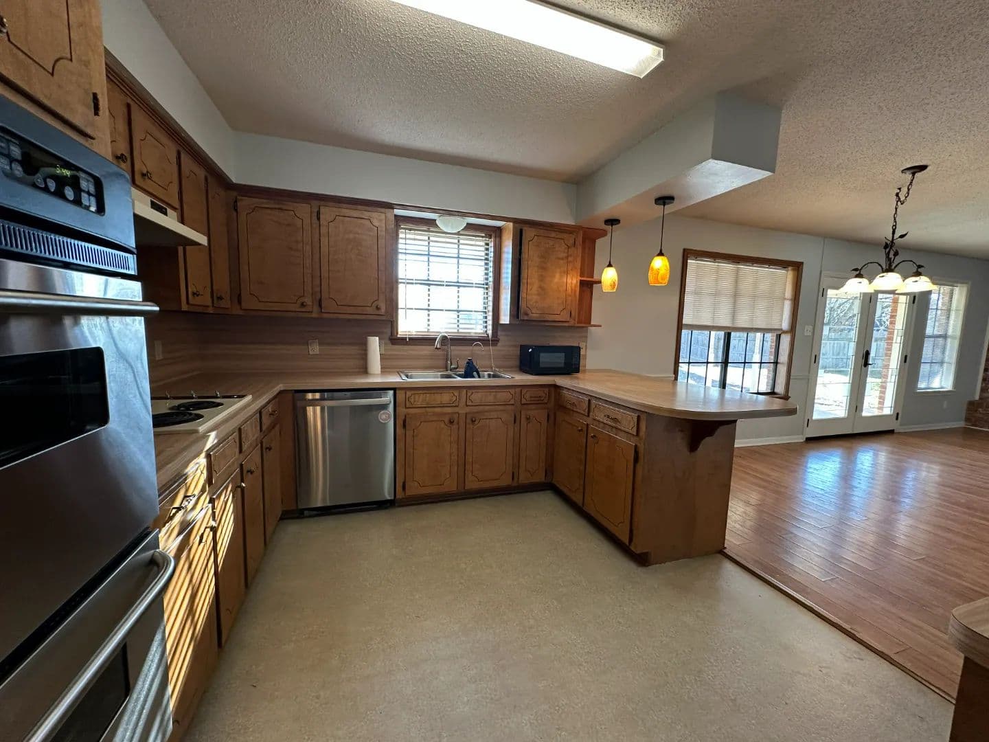 Inside, you’ll find warm and welcoming living spaces with a functional layout designed for everyday comfort. The kitchen is well-equipped for both daily living and entertaining, featuring ample cabinet storage and a double oven — perfect for home cooks and holiday gatherings. The bedrooms offer added character and practicality with attractive built-ins that provide style and extra storage.