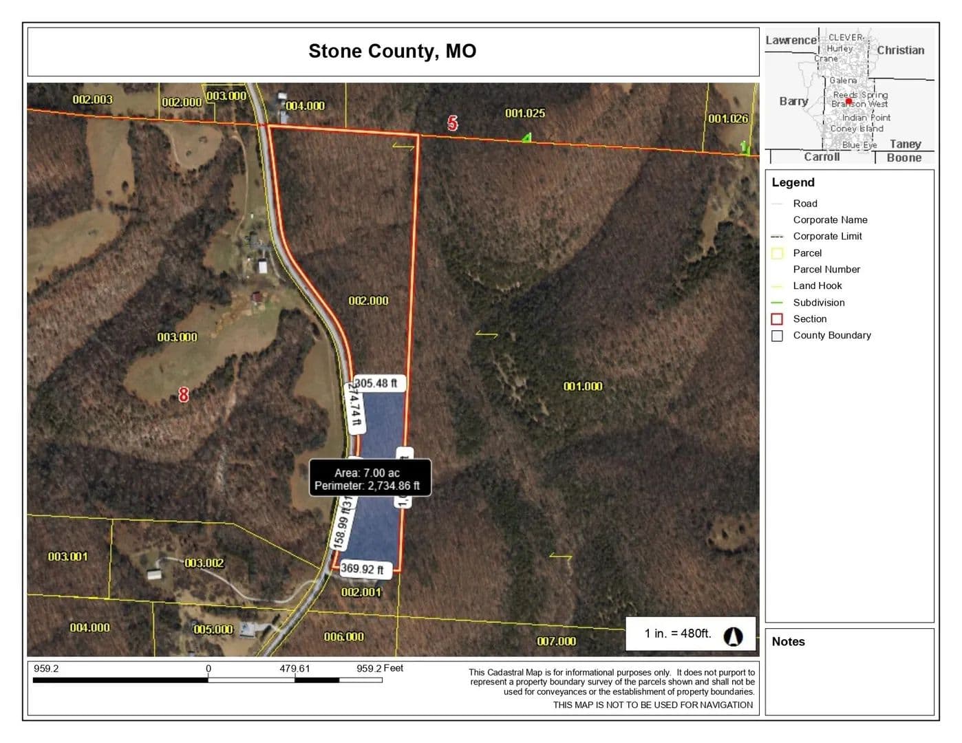 Mt. View Acreage just minutes to the new Silver Dollar City Resort, opening in late 2026. Trying to find a large parcel of land near Table Rock Lake to build your dream home on without all of those pesky, overbearing, annoying restrictions? Well you couldn't find it until now! 7 Acres only 9 minutes to Branson West and 15 minutes to the closest marina on Table Rock Lake (10x30 boat slip leases avail Hideaway 3k annual). Want to build a shop house? No problem. Horses? No problem. Tiny home? No problem. (Mobile homes, zoning changes, and all building plans have to be approved by Stone county planning and zoning). Dreams really do come true. Just off of State Hwy Y, less than 10 minutes from Branson West Municipal Airport, you will find this beautifully rolling parcel with mature trees, natural rock ledges, and abundant wild life. Submerge yourself in nature, without living WAY out in the sticks. Seller is owner/agent.