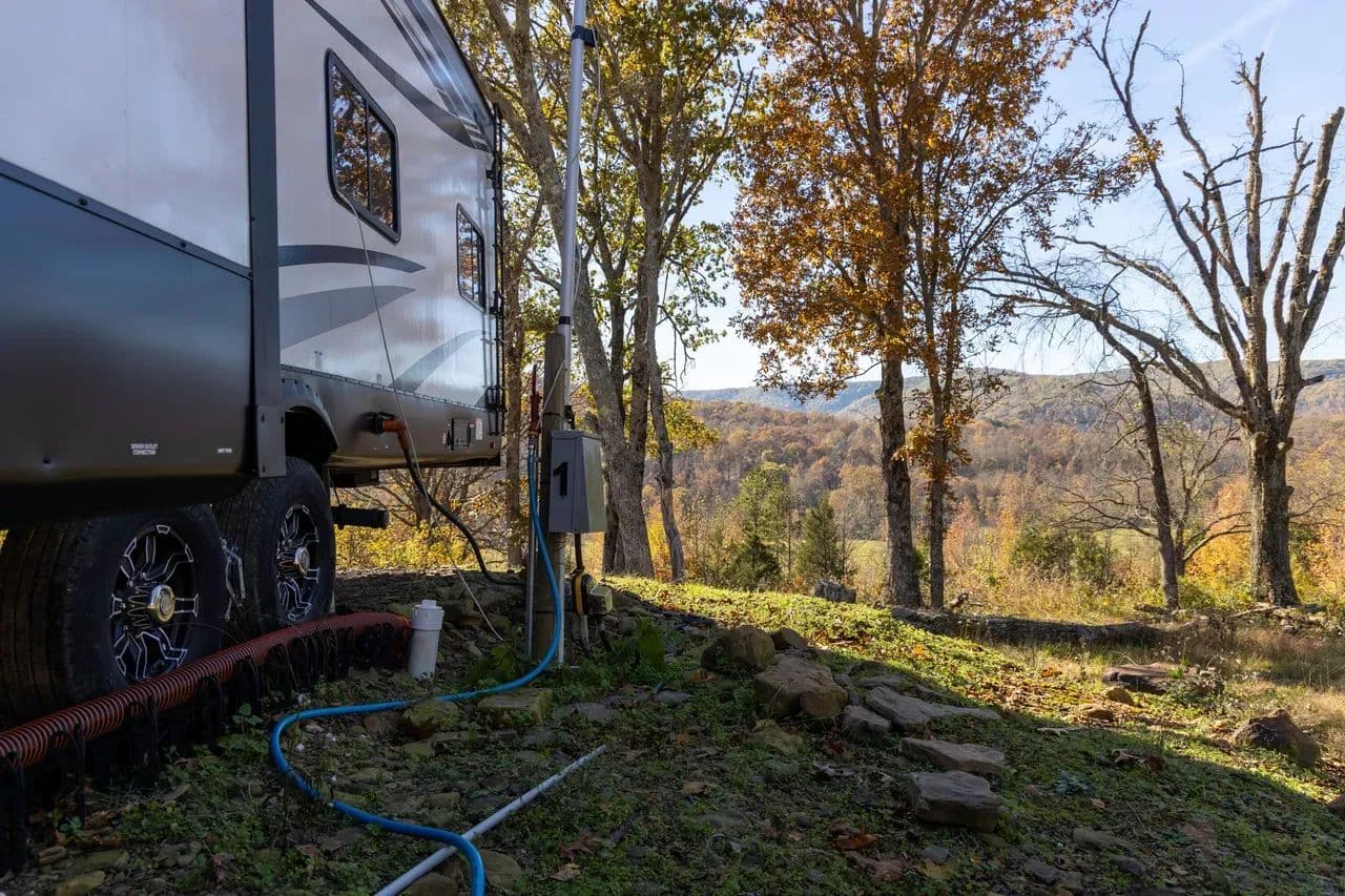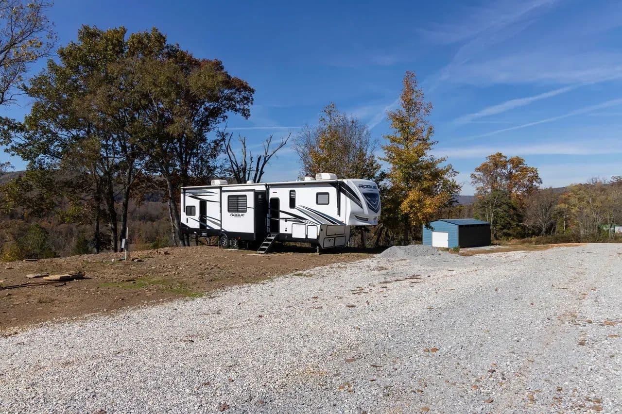 A picturesque approach to the property starts with the crossing of a low water bridge that crosses Fleming Creek. A small climb up the drive levels out to a beautiful scene to spend quality time in the outdoors. Behind each RV site is a beautiful view of the valley. Frequent deer visits to the property add to this experience.