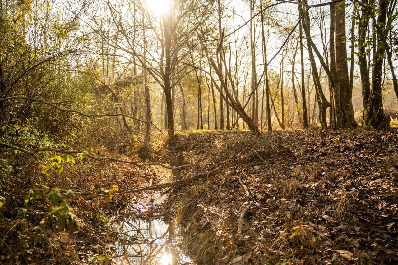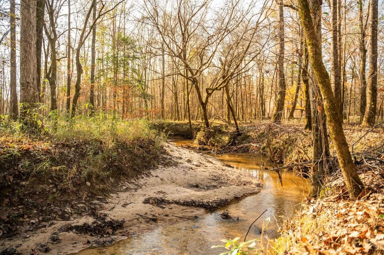 Creek corridors, spring branches, and low-lying hardwoods support turkeys, deer travel routes, and small game.