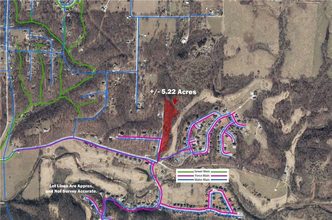 +/- 5 acres of prime land in the rapidly growing community of Pea Ridge, AR, zoned RE Residential Estate and R-1 Low Density Residential. This scenic property is located across from Sugar Creek Estates and overlooks Hole 18 of the Big Sugar Golf Course, offering beautiful fairway views. With sewer and water available at the street and electric and gas nearby, the property is well equipped for development. Ideally located near the Big Sugar Clubhouse, it's also approx. 2.5 miles from the Walmart Neighborhood Market, 4 miles from Pea Ridge High School, and approx. 9 miles from Walmart's new world HQ - making it a strategic and attractive location for residential investment or development.