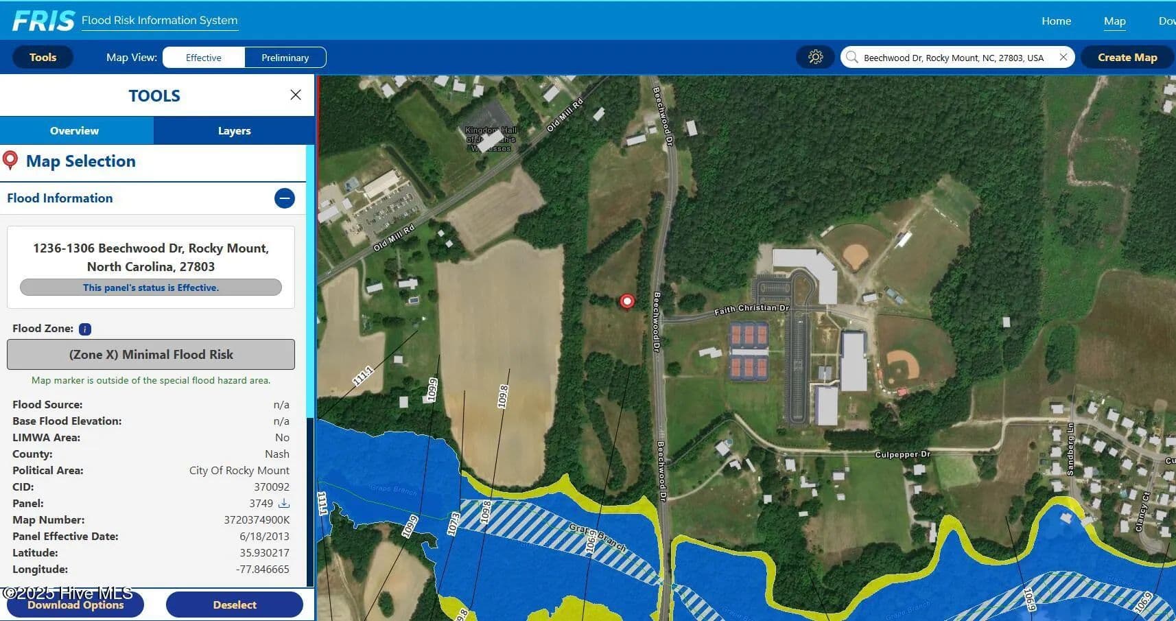 Beautiful 15 ACRES of Very Buildable land; in mostly X flood zone. Tons of road frontage! Approximately 14 acres cleared land with brush, and 1 acre of trees. A small creek borders the south end of the property. Great location across from the Faith Christian School campus and within the city limits of Rocky Mount NC. Just outside the hustle and bustle, but near restaurants, shopping and recreation. So much potential! Current Zoning A-1 Agriculture