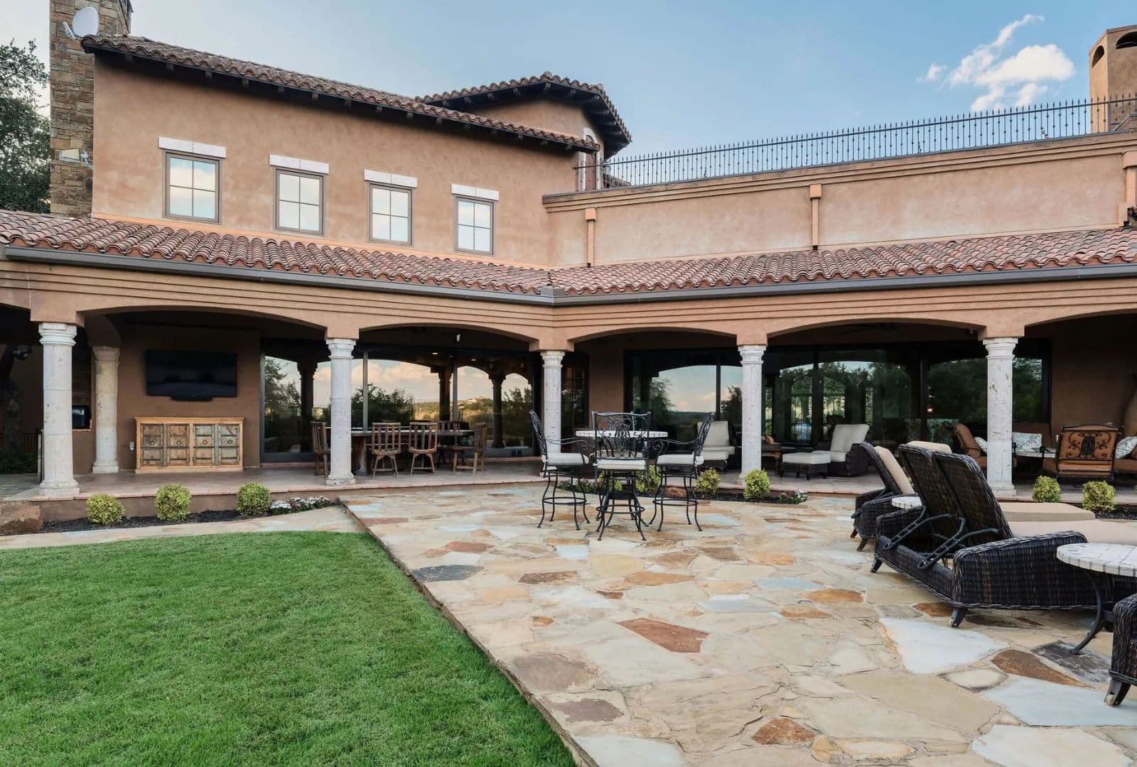 Set on 37 plus scenic acres with a half-mile of Pedernales River and Fall Creek frontage, this stunning Spanish-style estate offers over 11,300 sq. ft. of living space in the heart of Texas Hill Country, just 30 minutes from Austin.