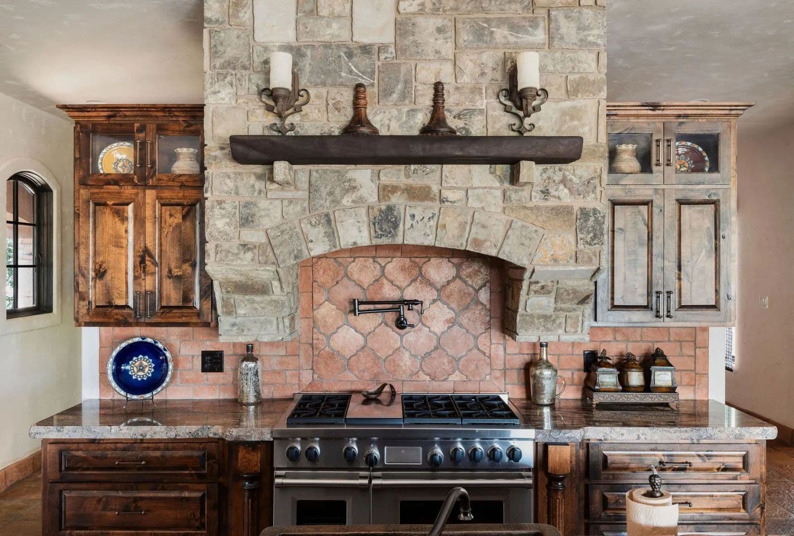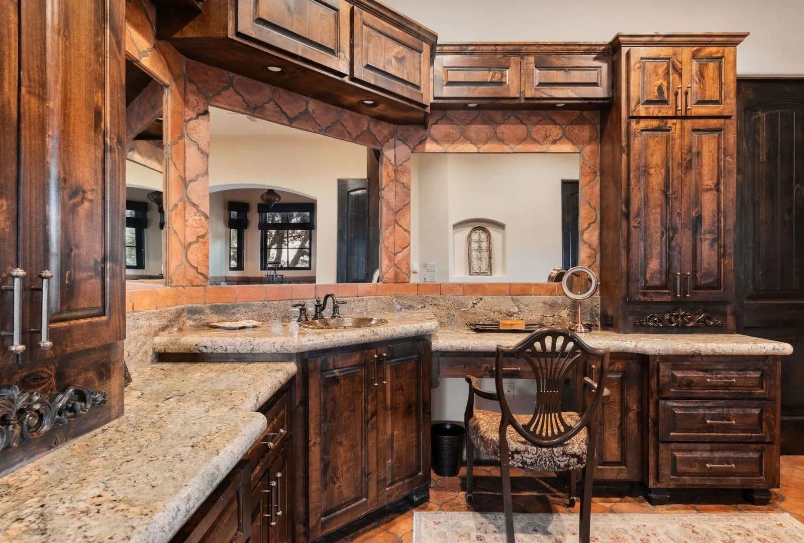 The 7,300 sq. ft. main residence features 4 bedrooms, 5 full baths, 3 half baths, and exquisite craftsmanship, including Saltillo tile floors, hand-plastered walls, and custom wood and iron accents. A chef’s kitchen, butler’s kitchen, wine storage, expansive exercise room, and state-of-the-art stereo system add to the luxury. Three fireplaces provide warmth and ambiance, while multiple patios invite outdoor living.