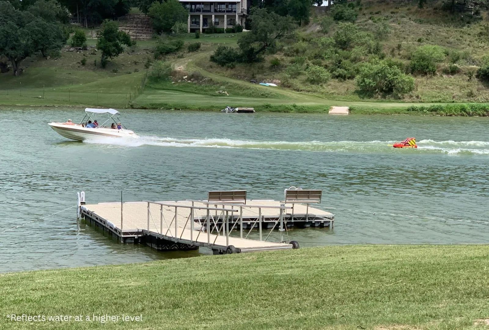 A 3,000 plus sq. ft. guest house offers 3 bedrooms, 3.5 baths, a fireplace, and a full kitchen. Additional amenities include a 1,000 plus sq. ft. hobby shop, over 3,300 sq. ft. of garage space, and a heated pool with a jacuzzi. Owners have access to a private boat ramp and portable HOA dock for ski boats and fishing boats and renowned white bass fishing, making this a water enthusiast’s dream.