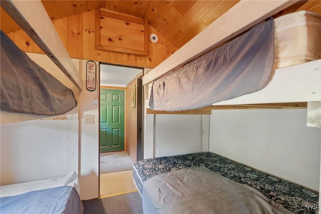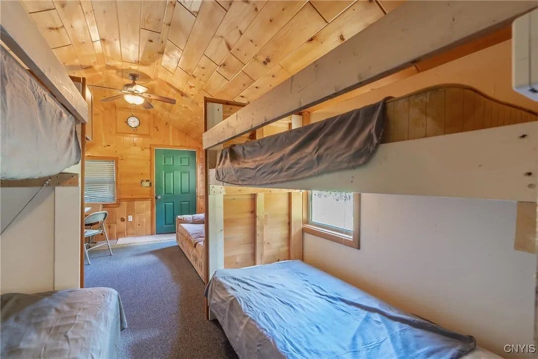 Escape to nature with this incredible opportunity to own a secluded camp just under 28 acres, directly across from Hall Island State Forest. Perfect for outdoor enthusiasts, hunters, snowmobilers, fisherman, or those simply seeking peace and privacy, this property offers the ideal blend of natural beauty and off-grid living. Nestled among mature trees, this camp includes a cozy cabin-style structure complete with a wall furnace, bunk beds, and open living/kitchenette area. Whether you're looking for a weekend getaway, base for all-season recreation, or AirBNB, this property delivers.