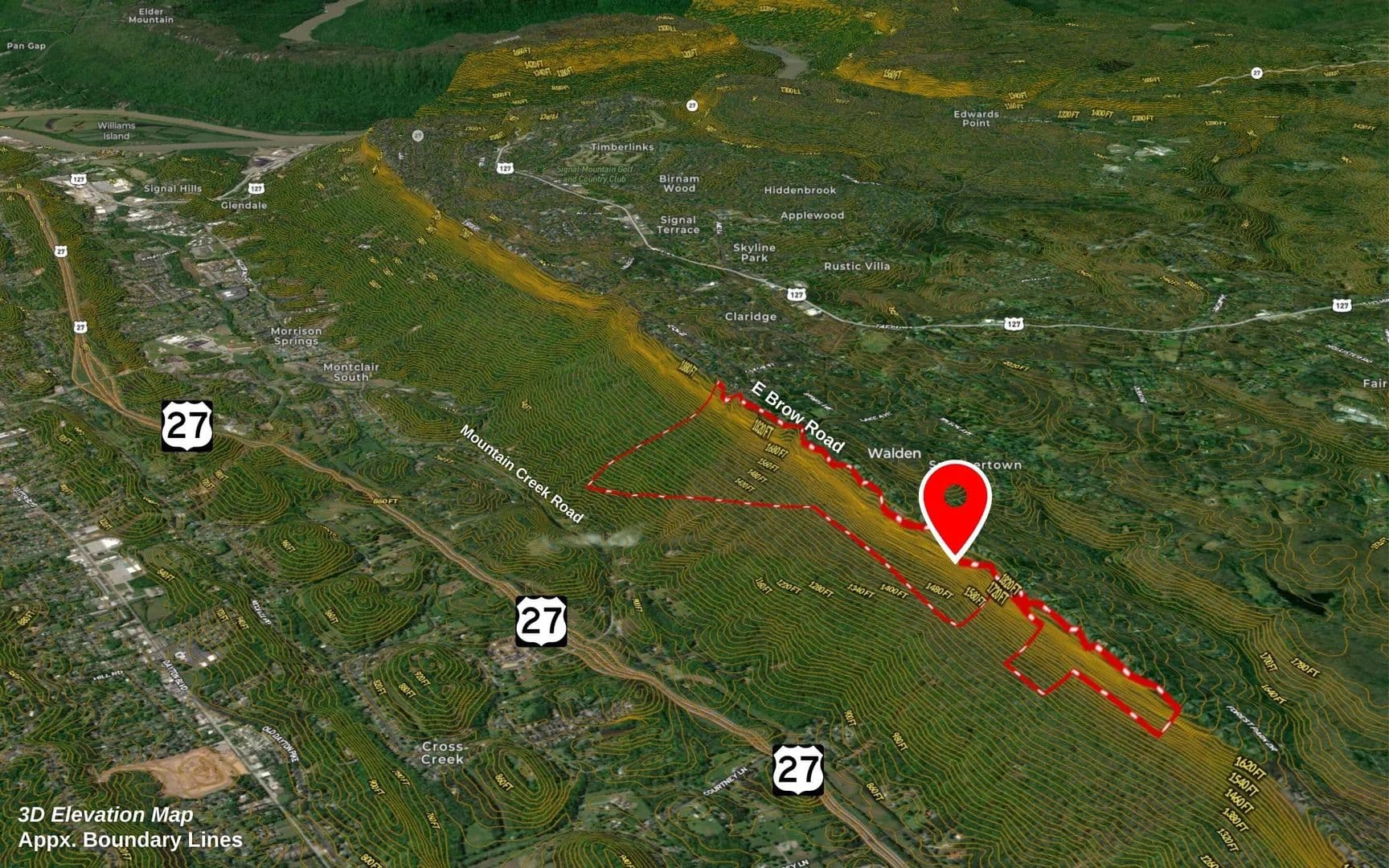 **See photos/documents for maps. Southern property line has been adjusted to create access easement via Mountain Creek Road. Tax records may not be accurate. Owners request all showings to be booked through listing agent office (Agents, please use BrokerBay @ 888-594-8304). Accessing property via E Brow Rd currently would be very challenging. Any and all property lines on photos are simulated and are approximate. Buyer is responsible to do their due diligence to verify that all information is correct, accurate and for obtaining any and all restrictions for the property.**