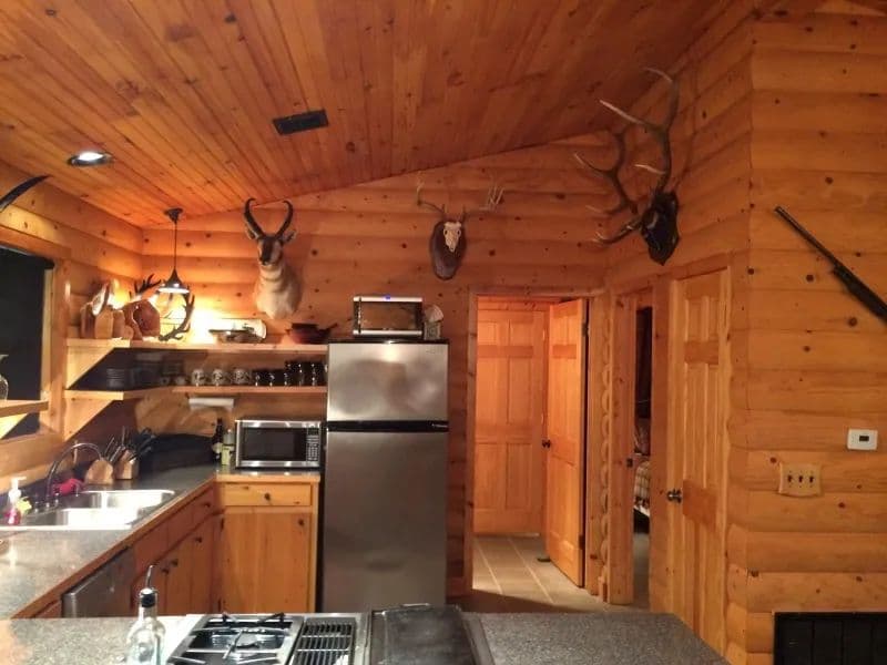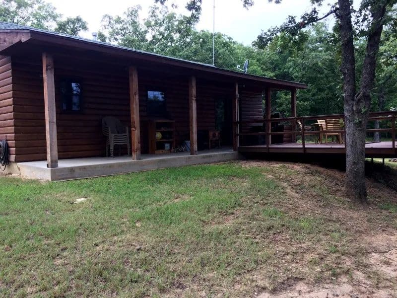There is a small 1BR, 1BA, cabin built in 2005 to make this your dream recreational escape, featuring tile flooring throughout, a stainless steel refrigerator, Jenn-Air propane oven/range, Bosch dish washer, washer and dryer, propane log fireplace, and a deck overlooking the pond. There is central heat and air, water well and septic.