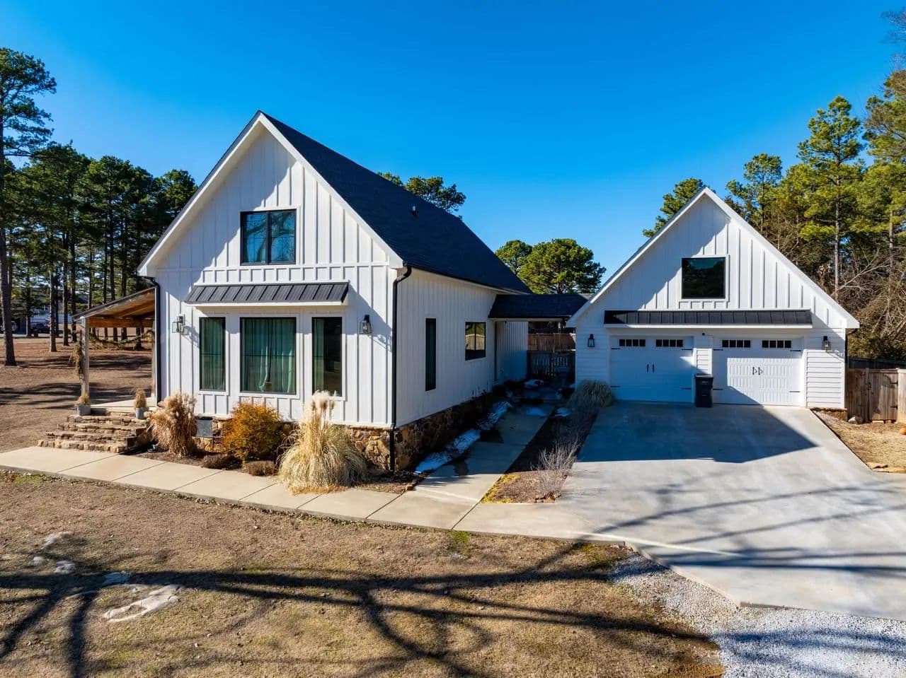 This 2,588 +/- sq ft modern farmhouse features 4 bedrooms and 3 bathrooms with a thoughtful, family-friendly layout. As you enter the home, you're welcomed into a spacious living room that flows seamlessly into the dining area and open kitchen, creating an ideal space for entertaining and everyday life. The kitchen includes a large pantry, and just off the main living area you'll find the laundry room for added convenience.