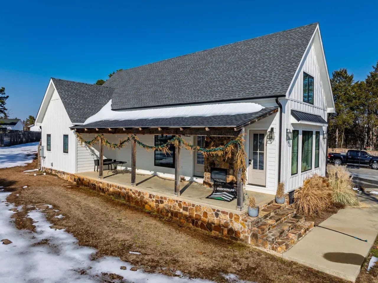 Outdoor and bonus spaces truly set this property apart. Enjoy slow mornings or evenings on the front porch, watching the kids play or sipping coffee in peace. On cooler mornings or evenings, gather around the gas fireplace and enjoy the cozy farmhouse atmosphere. There's also both indoor and outdoor electric fireplaces, adding charm and warmth year-round.