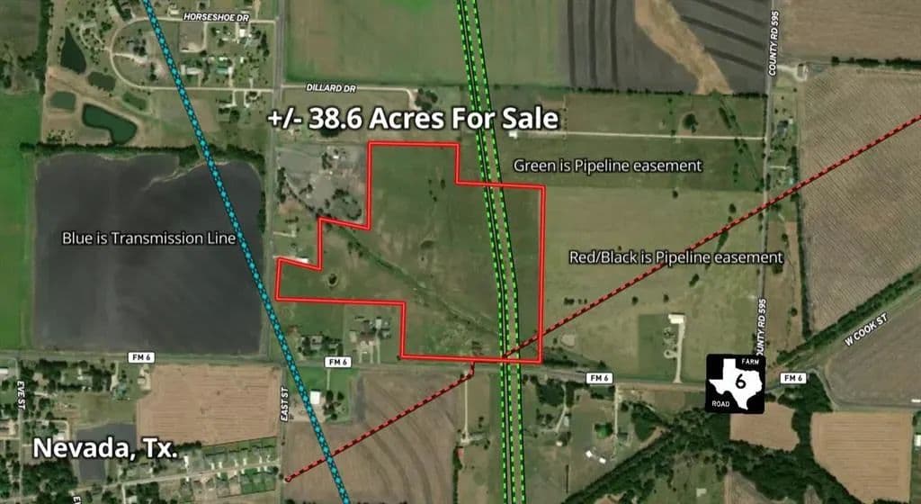 Great opportunity for 38.6 +- acres on FM 6 in the middle of Nevada, Texas. This is a rapidly growing corridor between Lavon, Tx. on Hwy 78 and Caddo Mills, Tx. on Hwy 66. Approximately 920 ft of road frontage on Fm 6 and 260 ft of frontage on Fm 1138. Residential, Commercial, Mixed Use or Long Range Investment, all of those options could create opportunities. Portion of property is in Nevada City Limits and the rest is in their ETJ. Nevada Water is the water supplier. Fm 6 does have plans for expansion. Community ISD campuses including Community High School and Edge Middle School are just North of the property.