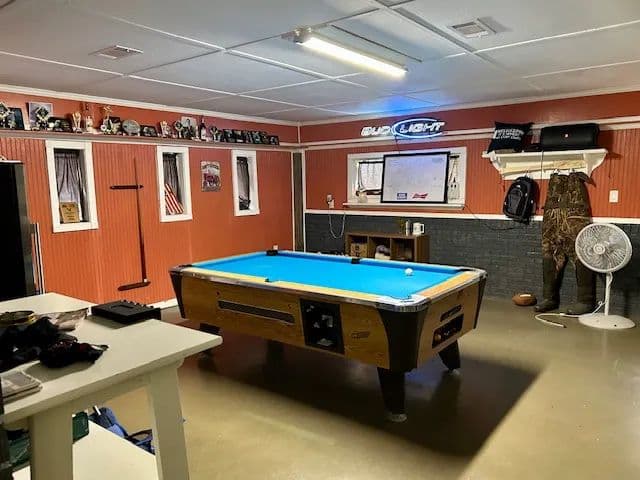 Inside, you’ll find 2 bedrooms, 1 full bath, and 1 half bath, with a spacious, open layout that’s perfect for everyday living. The home also includes a large additional room currently set up as a pool table/game room — a flexible space that could easily be converted into a third bedroom, or transformed into a luxurious master suite with an additional bath.