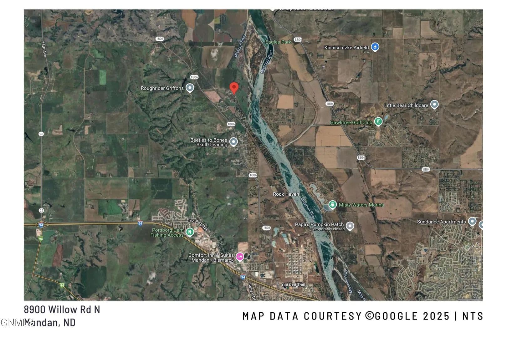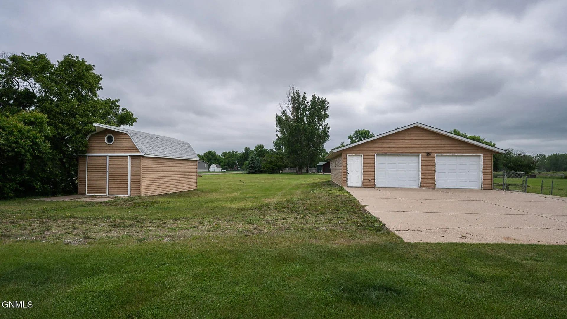 Welcome to Mandan's BEST KEPT SECRET! This development is private, secluded, and beautiful. River access will ensure you love every second on your new property, with a private wooden staircase taking you down to the water and the included dock (currently not in the water, but you can see it at the top of the stairs). As you drive to the property, passing meticulous lawns and welcoming homes, it's very evident everyone there takes pride in their homes. This 1.61 acre oasis is waiting for you to build your dream home, and it already has an oversized two-stall garage, 2 sheds and is over half-way fenced! The concrete slab is now removed for you to construct your dream home. This is the ultimate backdrop to a soft place to land at the end of the day, and it's calling your name!