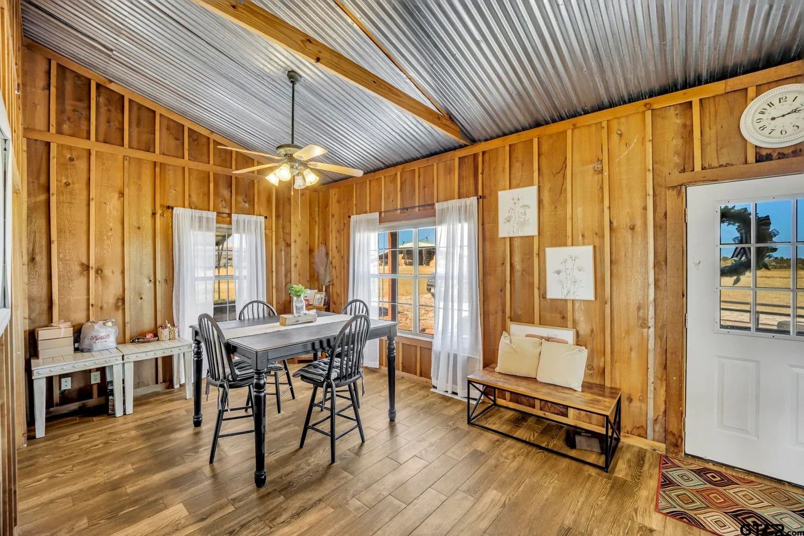 SPECIAL FINANCING AVAILABLE! Stunning turnkey ranch on 40 acres with a 1 Bed 1 Bath modern farmhouse! Make this beautiful acreage your dream space, with plenty of room for cattle, horses, and a lush Bermuda hay business. The cozy farmhouse is a fantastic space to call home while you build a larger house, great guest quarters, or even as a living space for a ranch hand! Enjoy sunrises on the wide front porch and sunset views through the bonus sunroom or off the covered back patio. You’ll love the high ceilings and open floor plan, plus a full utility and laundry room provides extra storage! Enjoy the chef’s kitchen with large island, stainless cabinets, farmhouse sink, and plentiful cabinets. A bonus nook in the bedroom with gorgeous light is a great office or seating area with a big walk-in closet. Start your ranch right away with the 50’ x 40’ insulated workshop with electric, a 20’ x 40’ storage building, a spacious loafing shed with pens, and a 10,000 sq ft hay barn. With great road access and frontage, travel with equipment to and from the pastures will be easy. Other tracts east on Spillway Rd are also available for expansion! This tranquil retreat and working ranch has incredible possibilities and will be your peaceful rural haven. Call today for more information!